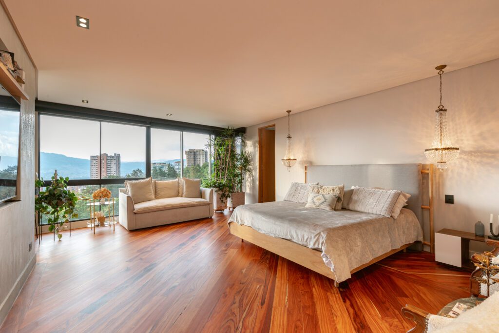 Fully remodeled 4-bedroom, 5-bathroom apartment in the Clinica el Rosario area of El Poblado, Medellin. With a spacious 401 m2, this single-level residence boasts European-inspired elegance, high-end finishes with an artistic flair, and stunning city and green views.