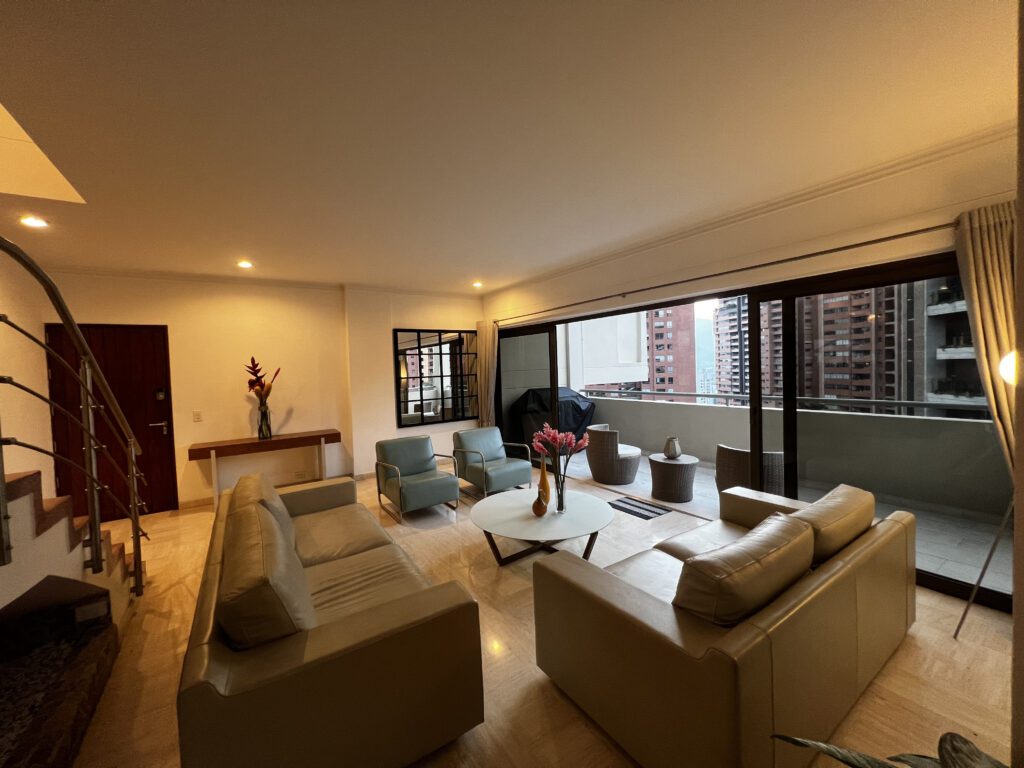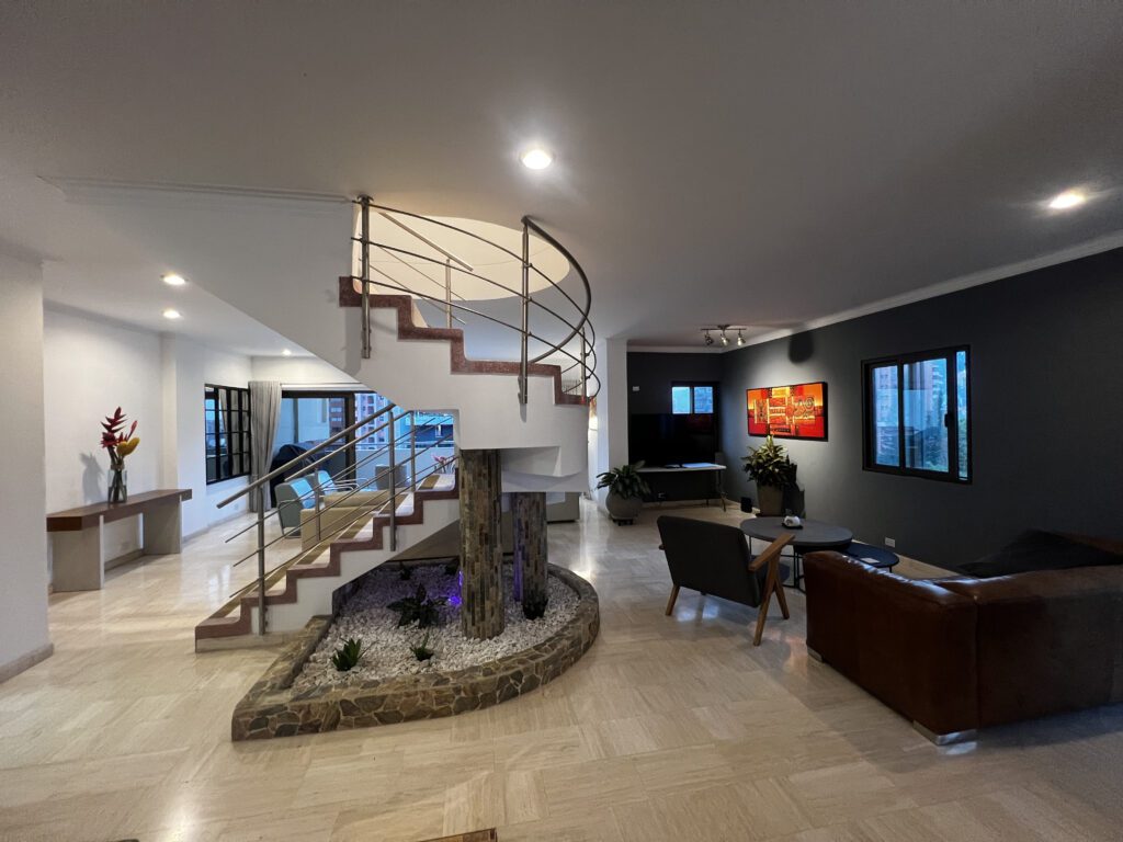 This 295 m² exceptionally bright, south-facing corner penthouse is located in a prime El Poblado position, within walking distance of El Tesoro Mall, Millie de Oro, and Provenza. The recently renovated apartment offers the benefit of two parking spots and a spacious store room. High-quality furniture can be negotiated with the seller.