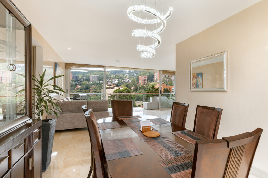 Spacious 3-bedroom unit in Las Santas, El Poblado, offering breathtaking panoramic views of the city and the mountains. Located near Provenza and El Tesoro Mall, this elegant home has a mix of convenience and luxury. With high-end interior design and premium finishes you´ll find a great option as a home/investment. The private and ample balcony captures the beauty of El Poblado, combining the tranquility of green views with urban excitement.