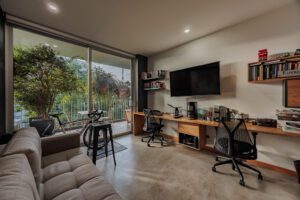 Located in one of El Poblado’s most desirable and quiet neighborhoods, this apartment in Las Lomas offers a unique balance of privacy, nature, and city access. Just minutes from the heart of Provenza, you can enjoy the best of Medellín’s restaurants, cafés, and nightlife—while coming home to the peaceful sound of a nearby stream and a view of untouched green reserve.
