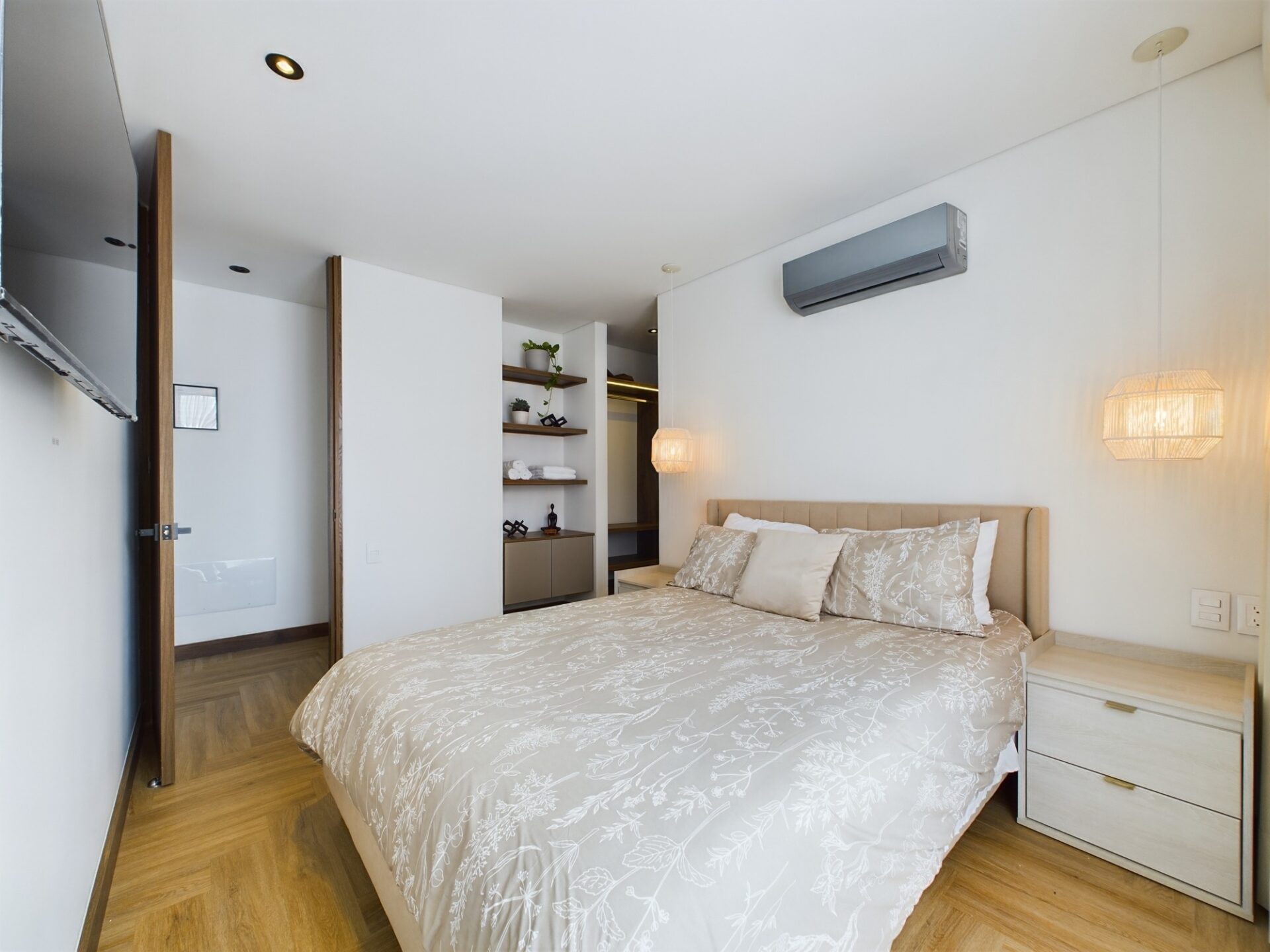 Daily Rental/Airbnb Allowed Apartment! Sophisticated 3-bedroom, 3-bathroom apartment located in the Golden Mile sector of El Poblado. This property showcases an open-concept kitchen adorned with high-end finishes, defining a contemporary living space. This 145 m2 apartment with an ample balcony and jacuzzi also includes an amazing city and green view to enjoy a morning coffee. The double height gives the apartment living room more spacious and with a modern aspect. The apartment includes two parking spots and a storage unit.