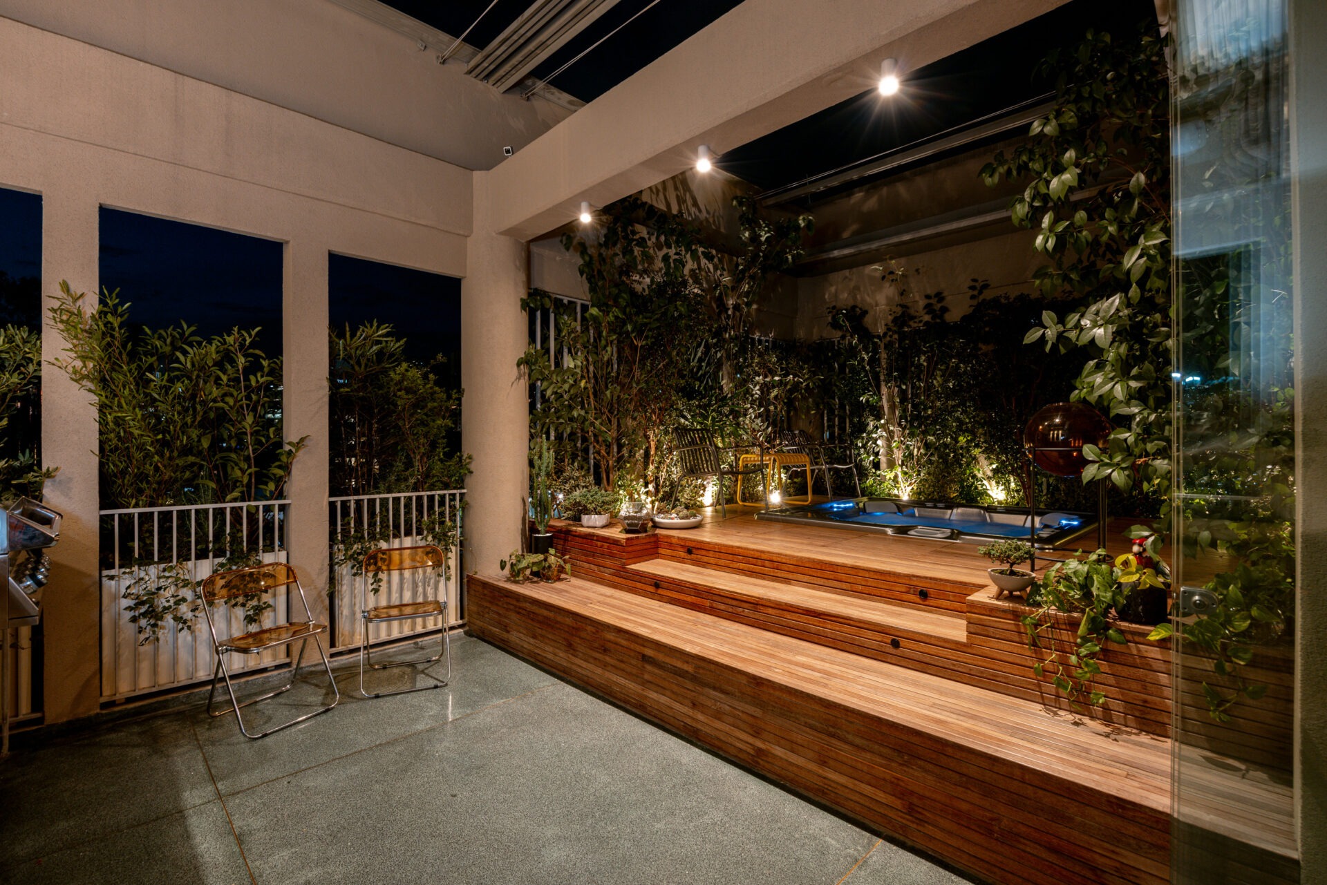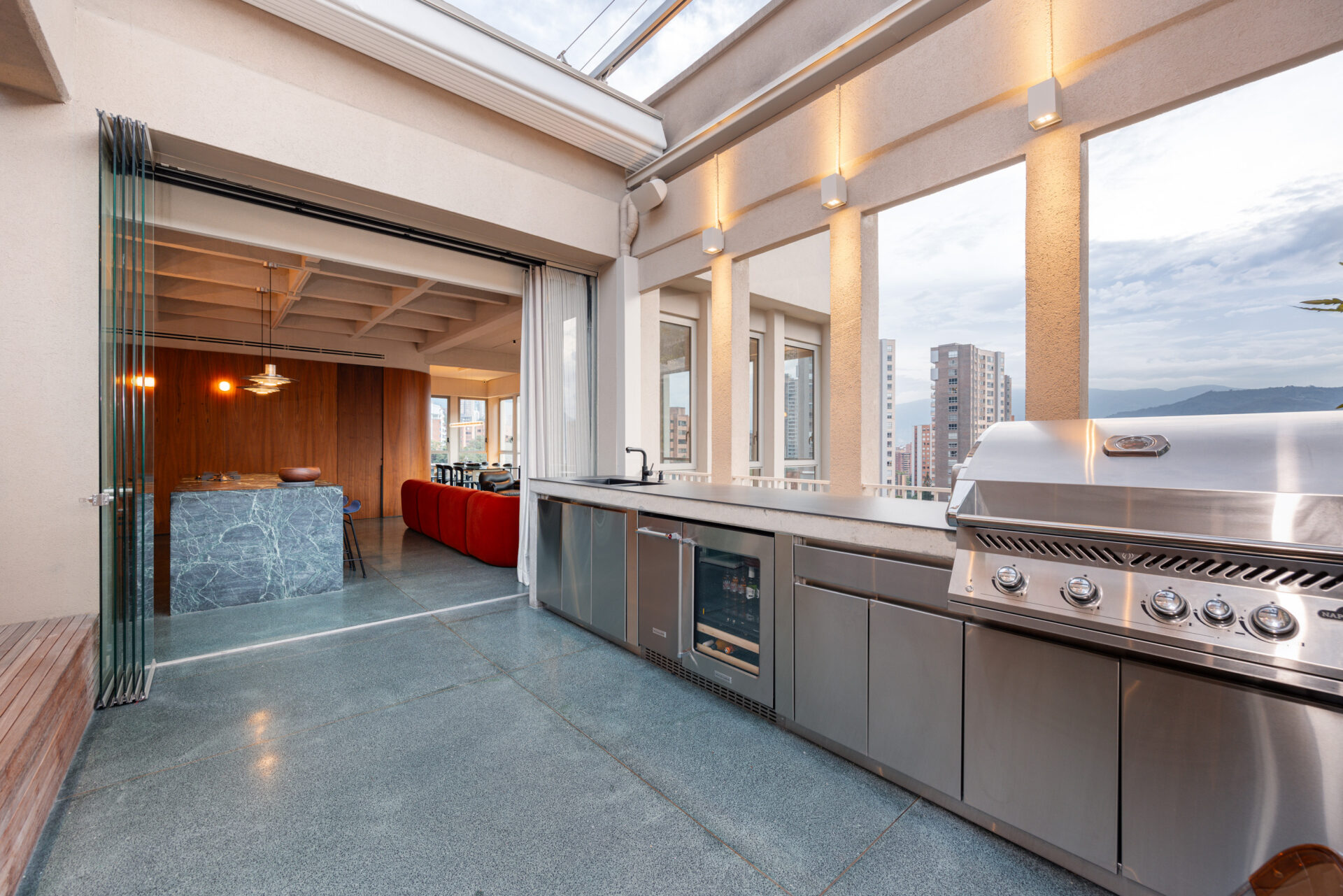 The penthouse expands into a private terrace designed for both relaxation and entertainment. A jacuzzi, BBQ area, and stunning city vistas create the perfect setting for evenings under the stars or intimate gatherings with friends.