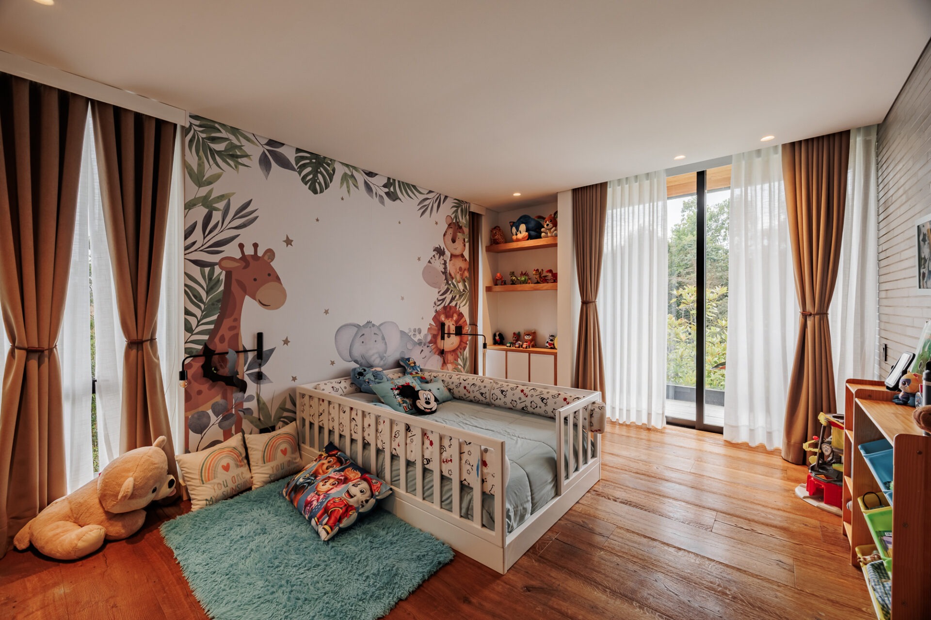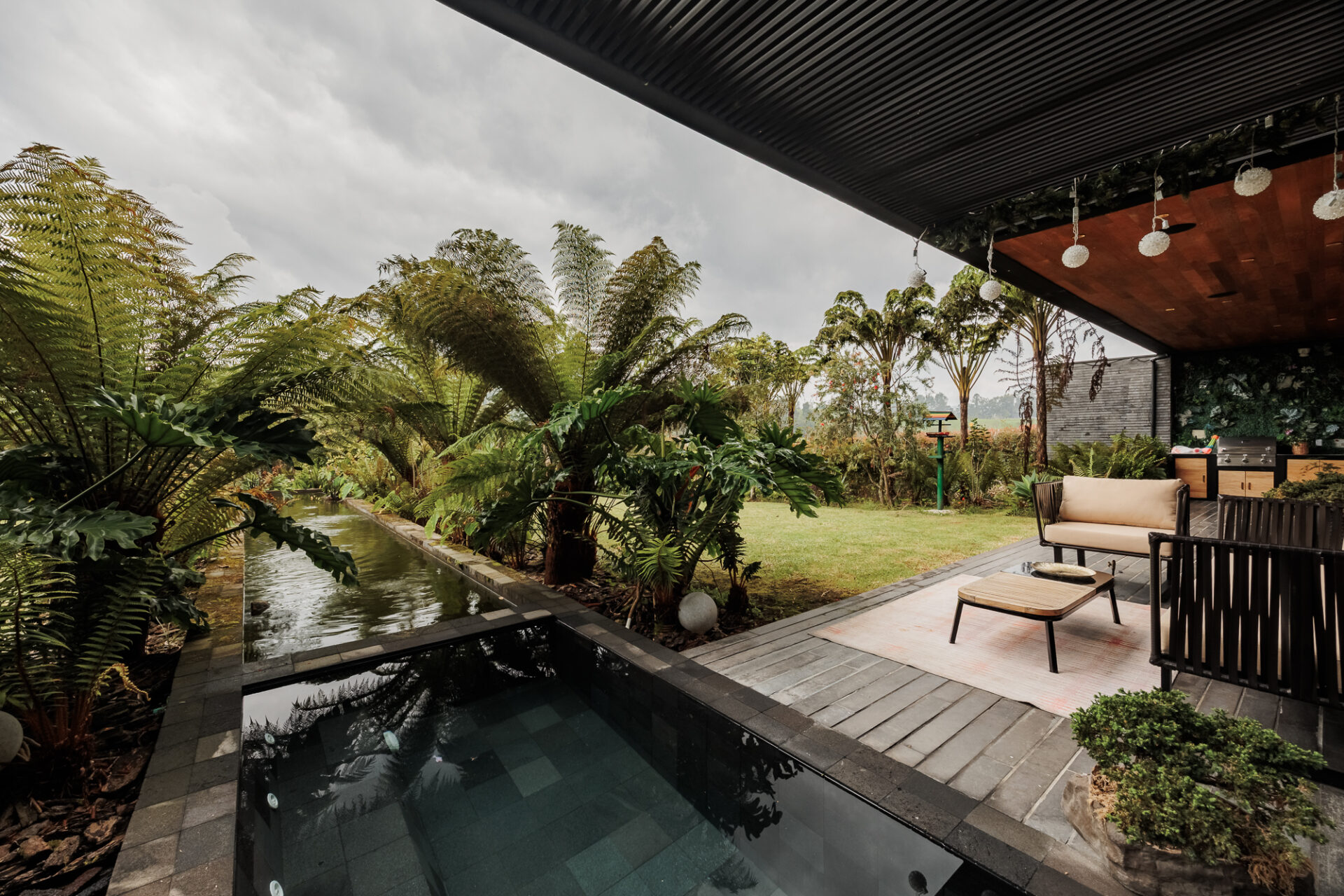 Large windows and terraces open the home to its natural surroundings. Outdoors, the property extends into landscaped gardens, a barbecue area, and a private jacuzzi, creating several spaces to unwind. Residents also have access to the community amenities, including a clubhouse, gym, pool, squash court, football field, children’s areas, and secure internal roads—all within a gated, fully monitored development.