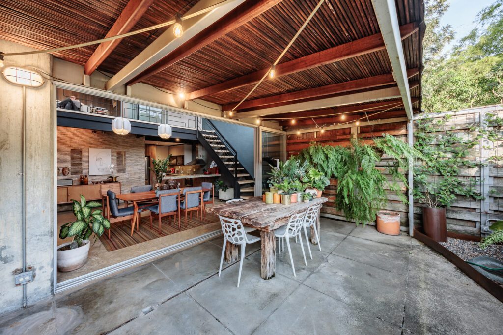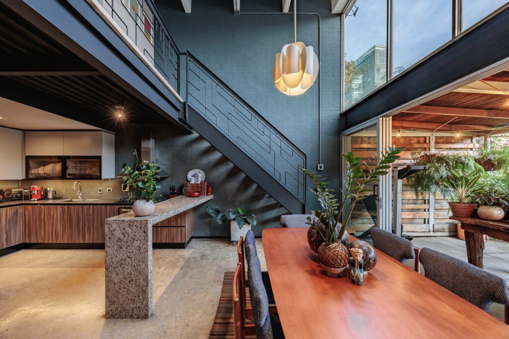 The apartment features a spacious open-plan layout with soaring 6-meter ceilings and a double-height design that enhances the sense of light and space. The open kitchen integrates seamlessly with the indoor living area, while the mezzanine-level bedroom overlooks the main space, creating a sleek, loft-style ambiance. You’ll find 1.5 beautifully finished bathrooms, a convenient laundry room, and a mix of indoor and outdoor lounge areas ideal for relaxing or entertaining.
