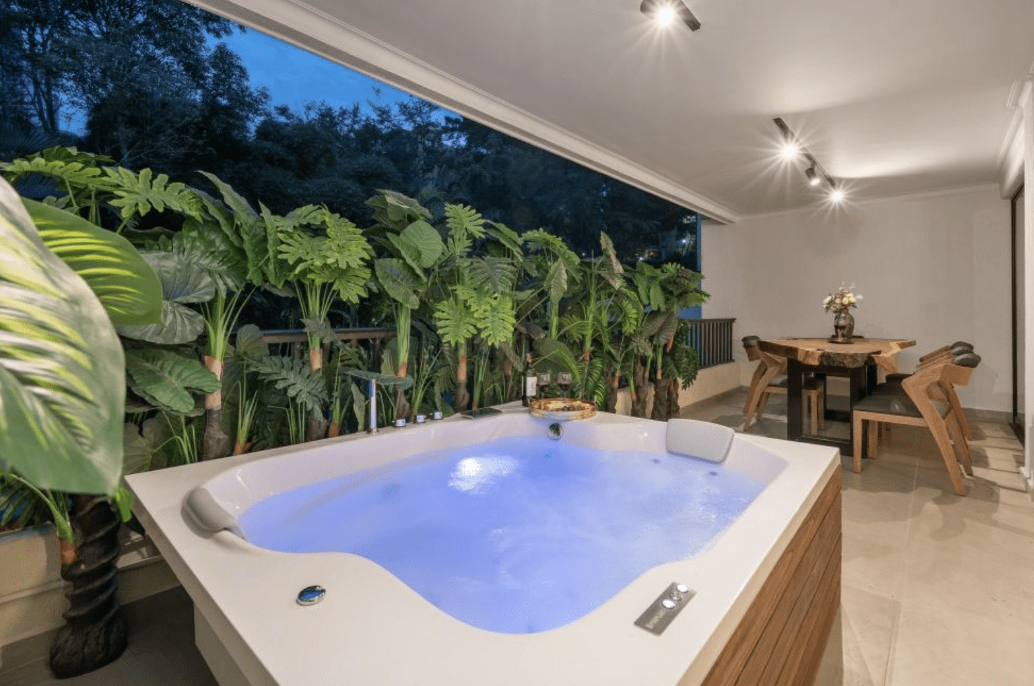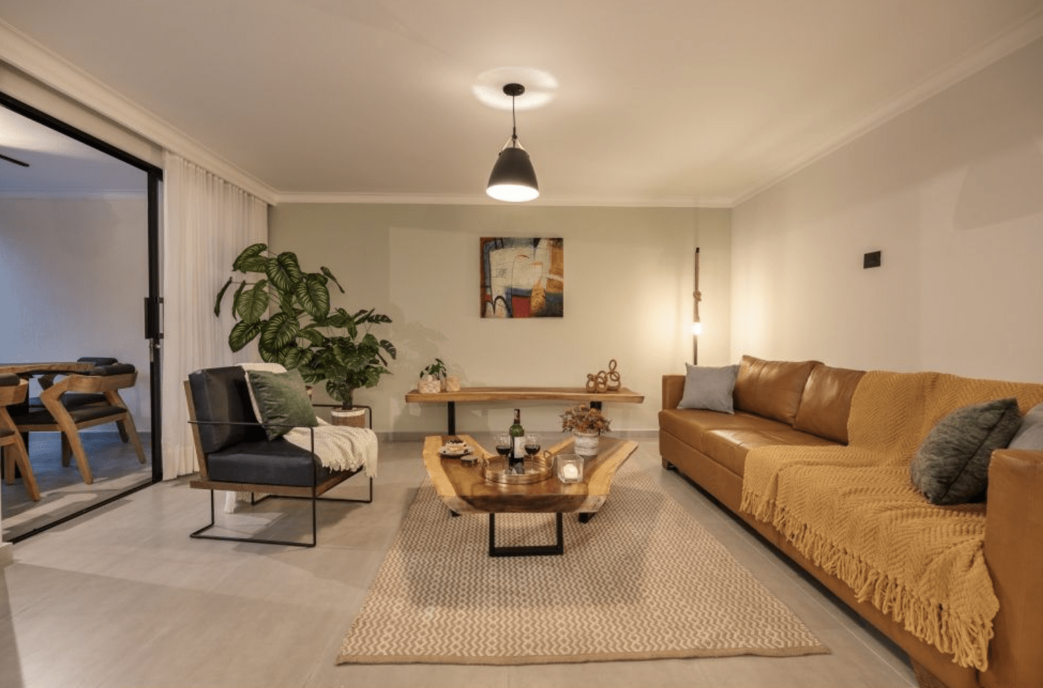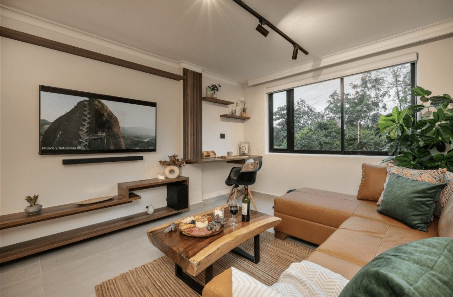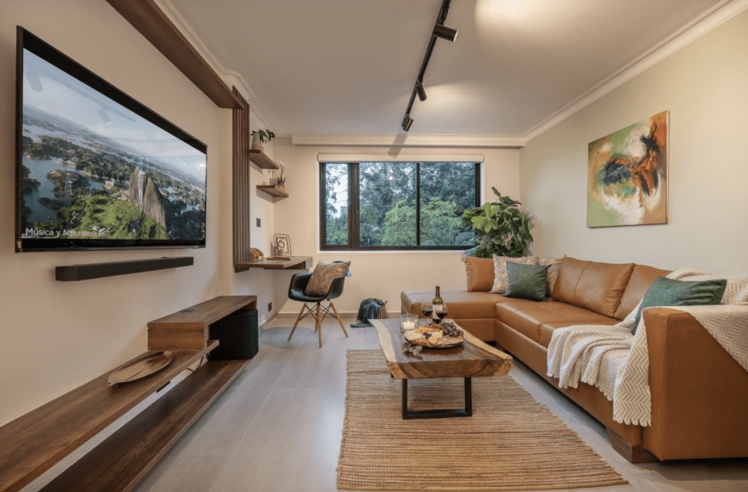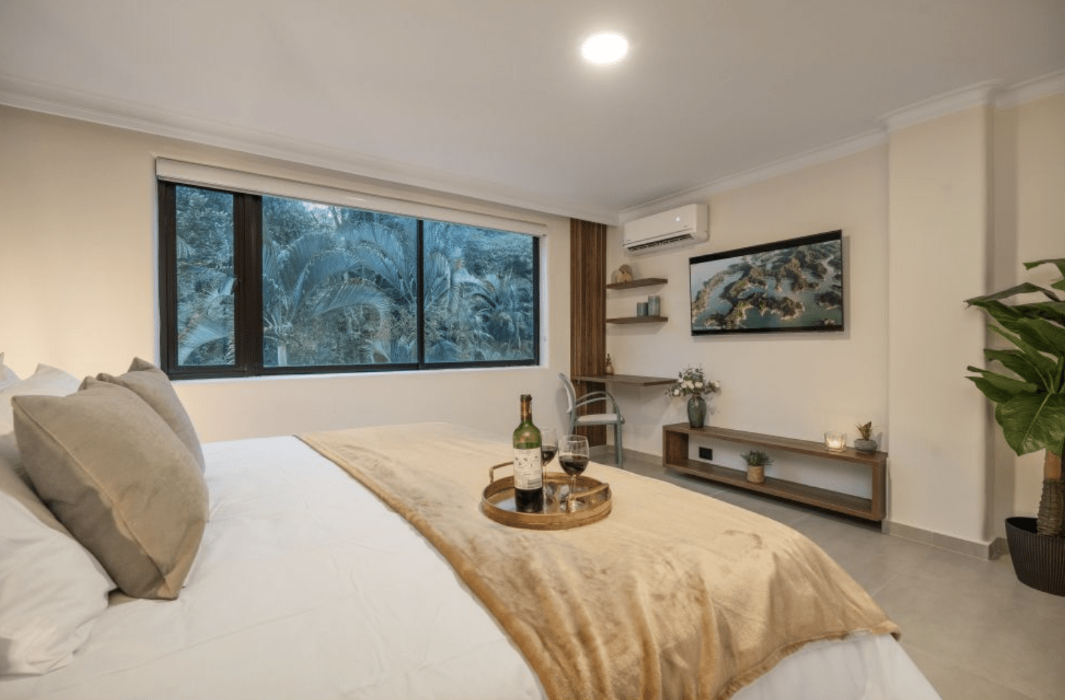 Fully remodeled and furnished three-bedroom apartment with a private terrace and jacuzzi, located in the Provenza sector of El Poblado. Positioned on a low level within a residential building. The apartment features three spacious bedrooms each with AC, each with its own ensuite bathroom, plus a separate guest bathroom.