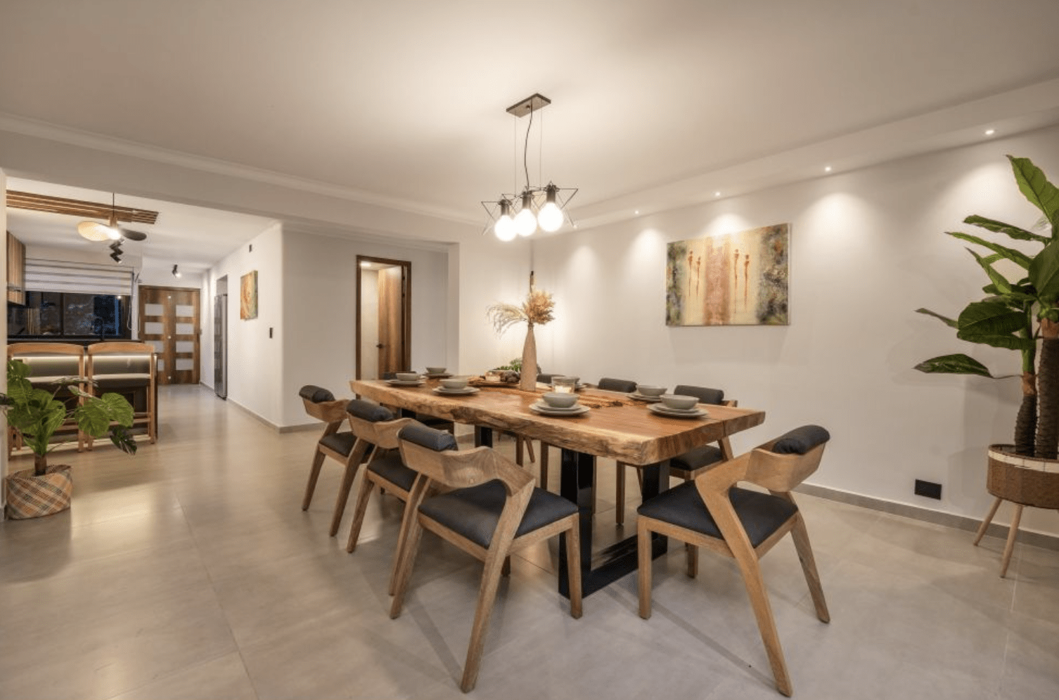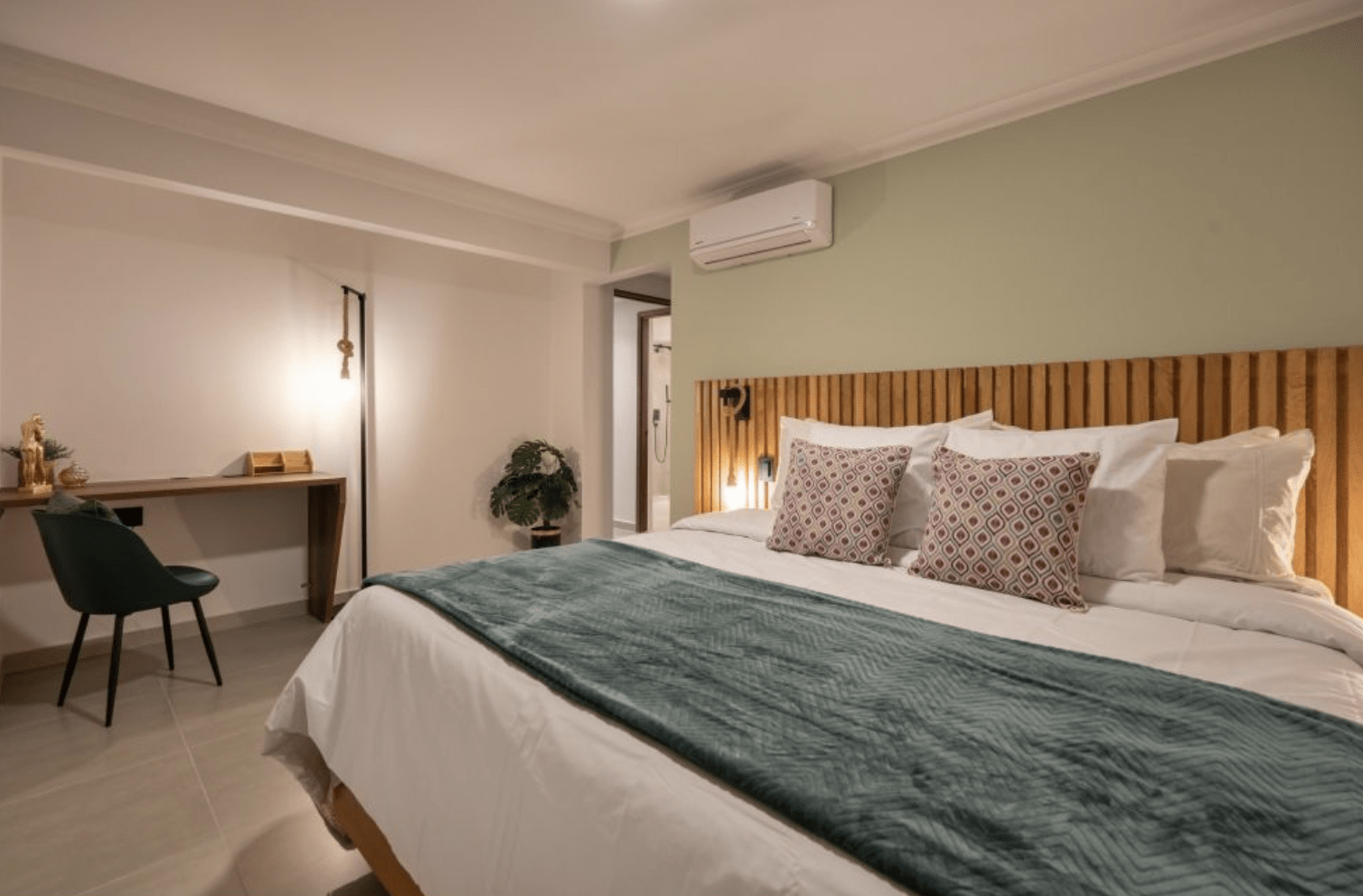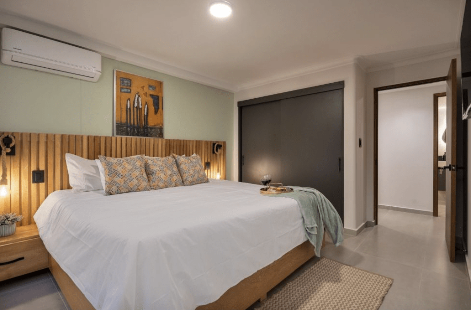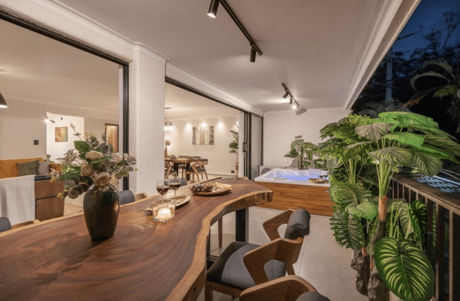 Fully remodeled and furnished three-bedroom apartment with a private terrace and jacuzzi, located in the Provenza sector of El Poblado. Positioned on a low level within a residential building. The apartment features three spacious bedrooms each with AC, each with its own ensuite bathroom, plus a separate guest bathroom.