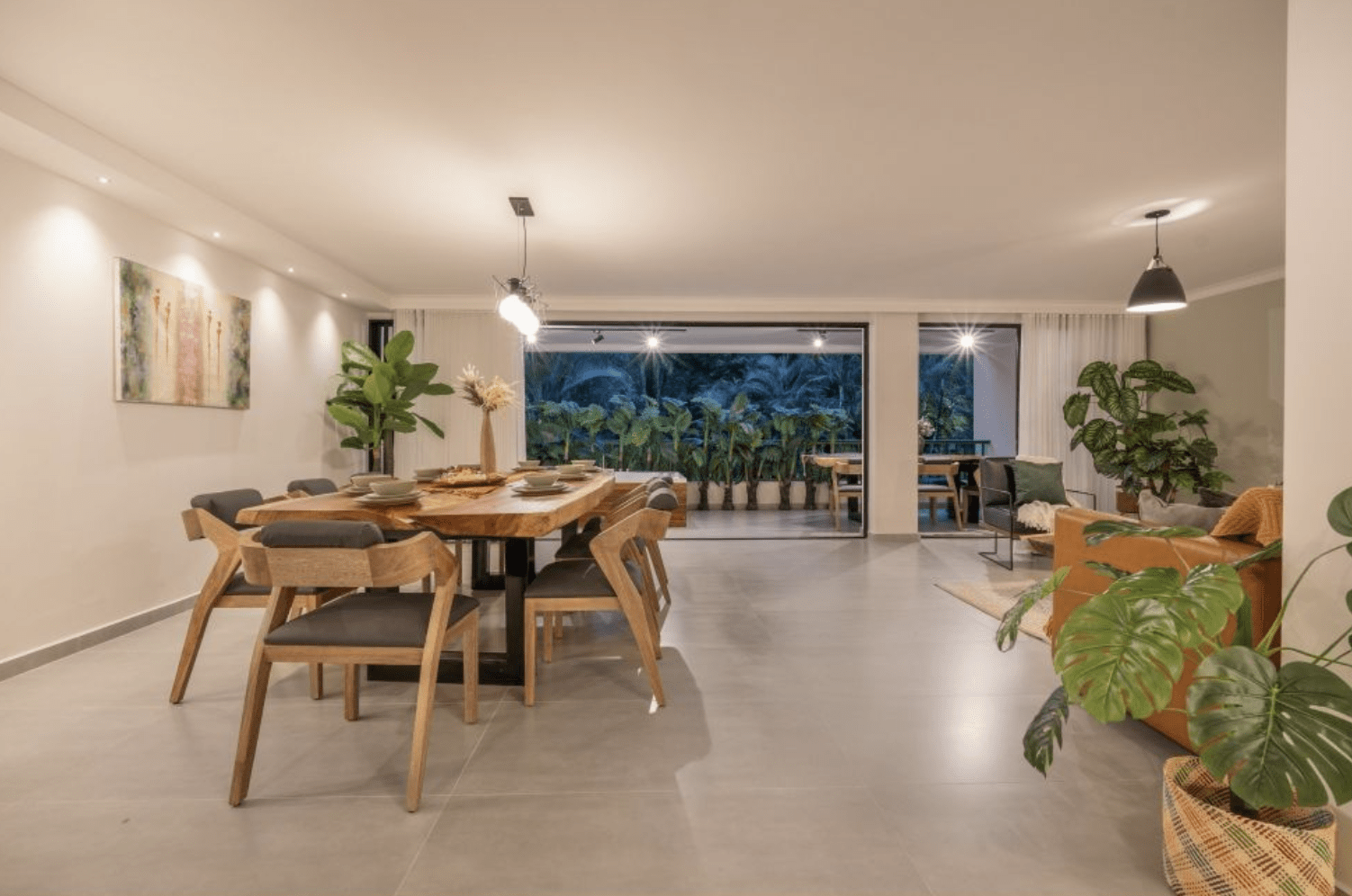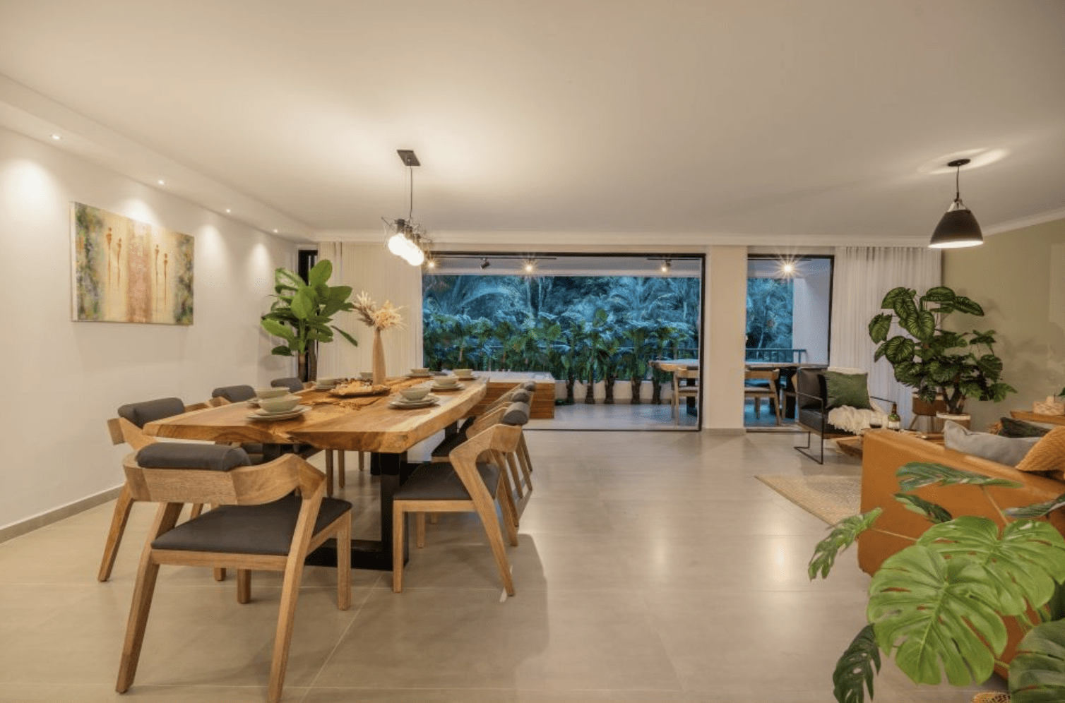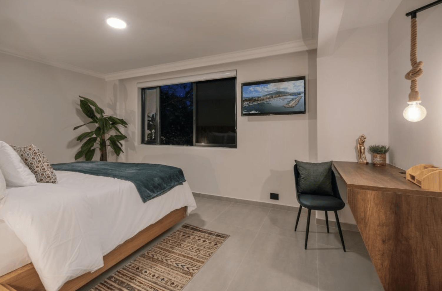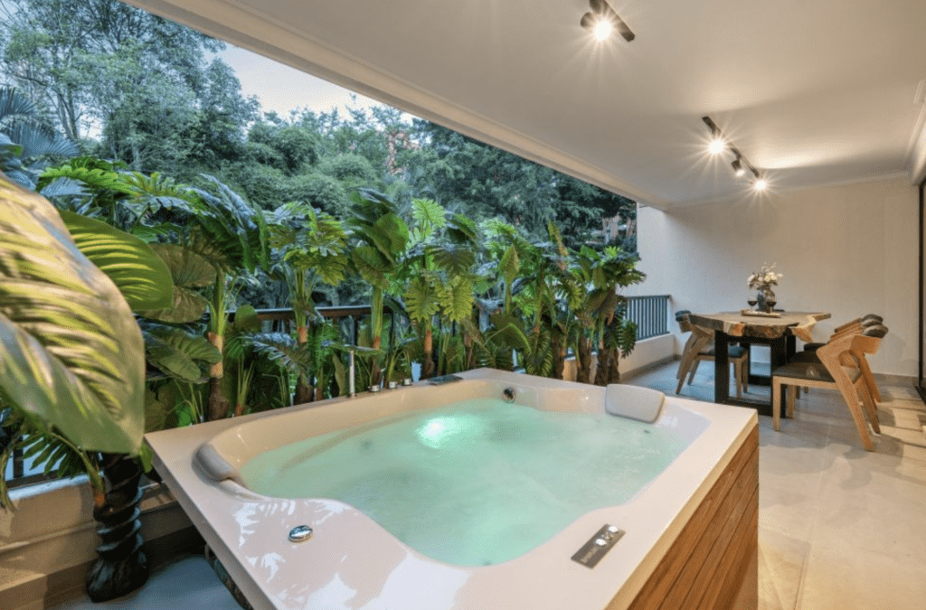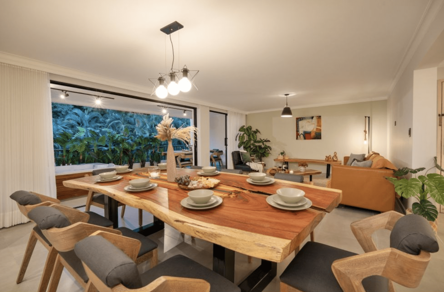 Fully remodeled and furnished three-bedroom apartment with a private terrace and jacuzzi, located in the Provenza sector of El Poblado. Positioned on a low level within a residential building. The apartment features three spacious bedrooms each with AC, each with its own ensuite bathroom, plus a separate guest bathroom.