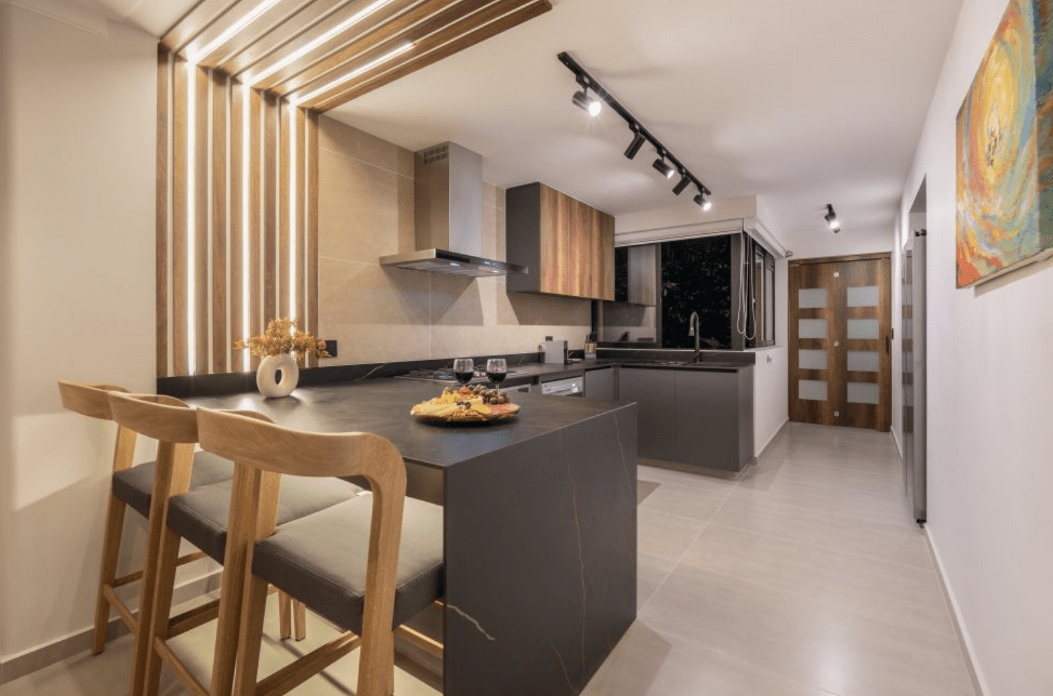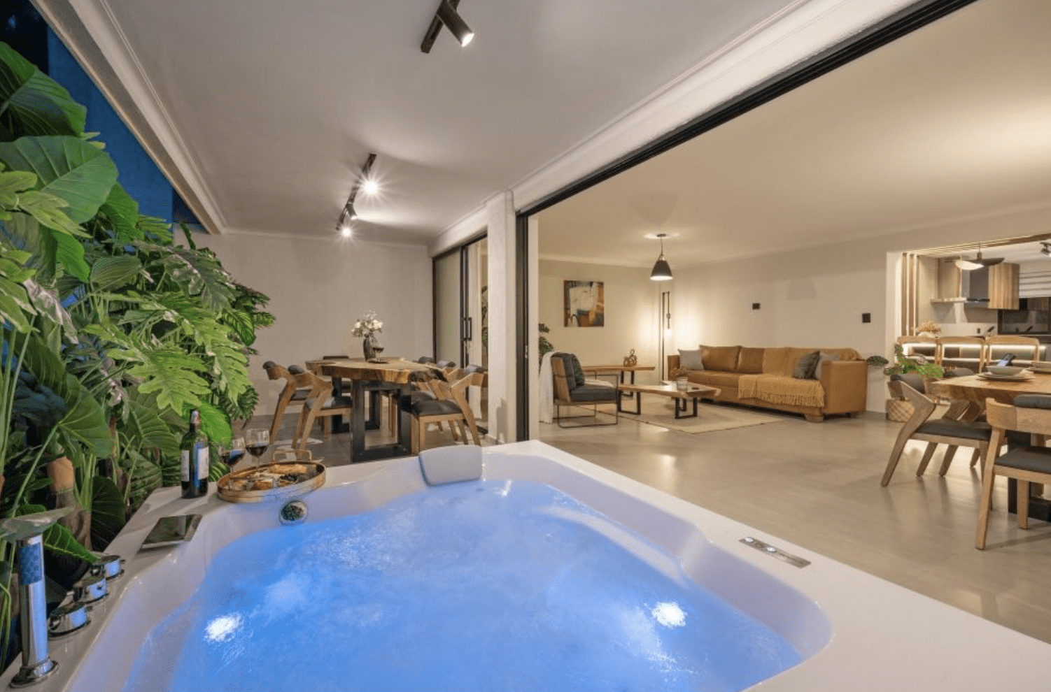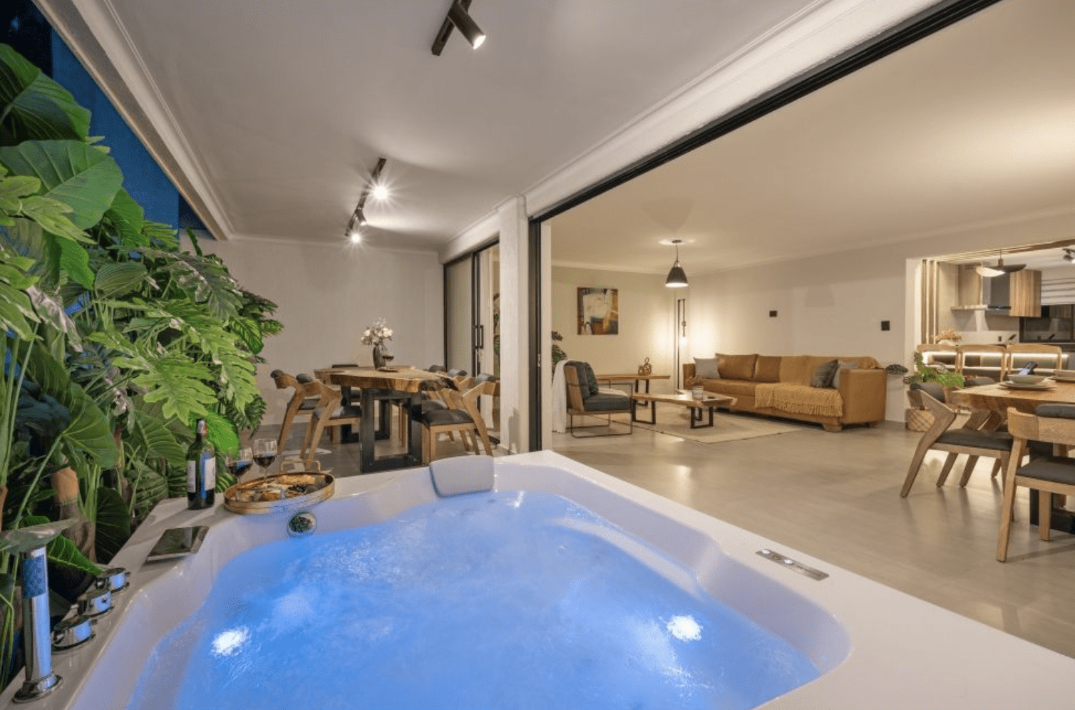 A defining feature of the apartment is the large private terrace, designed for year-round use. This outdoor space includes a jacuzzi and offers a quiet setting for everyday use or small gatherings, adding meaningful value to the property’s overall layout. The terrace functions as a natural extension of the interior living areas.