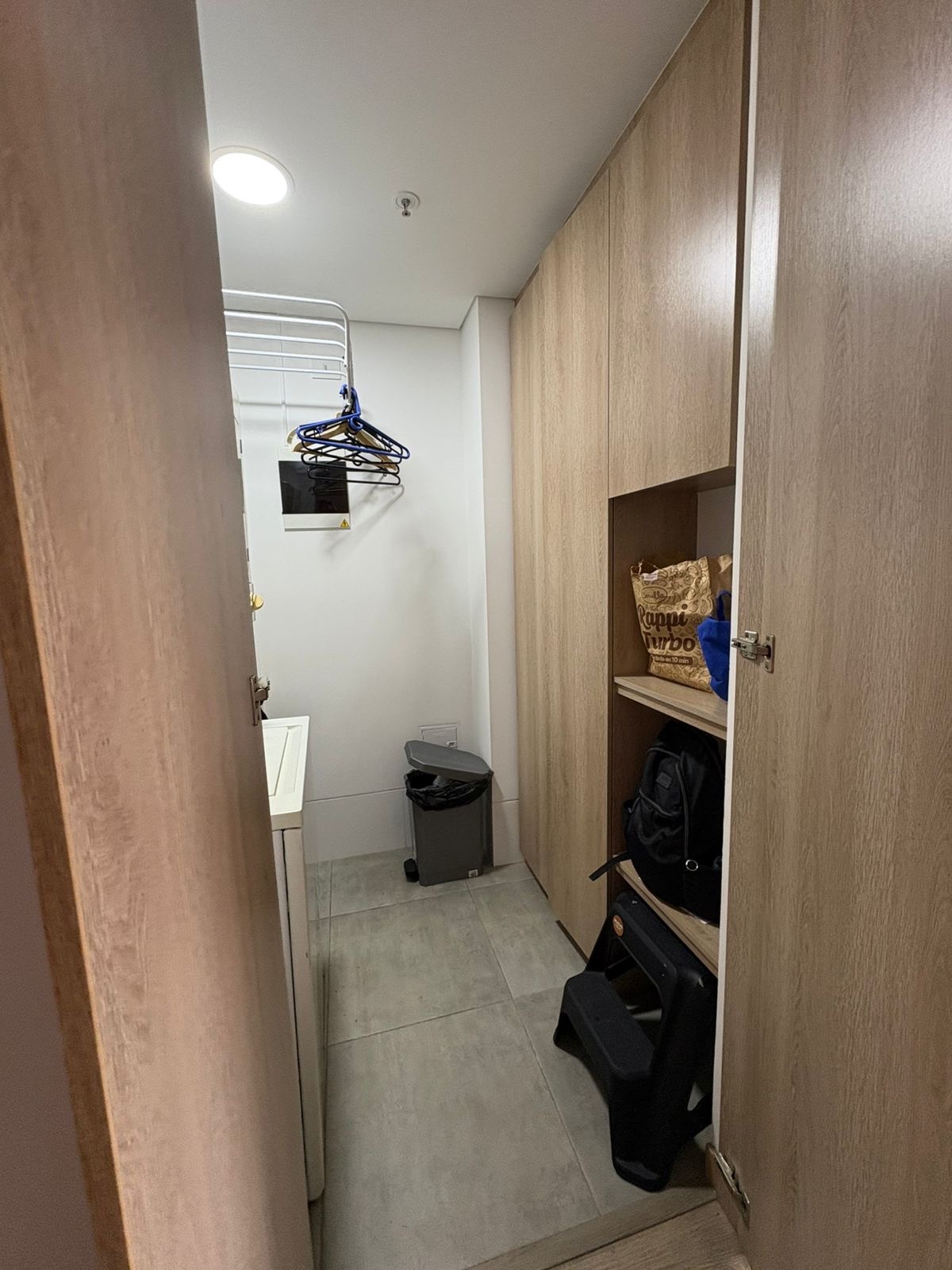 Thoughtful upgrades include a gas outlet on the balcony, a repositioned stove and sink for better kitchen flow, and custom cabinetry in the laundry area.