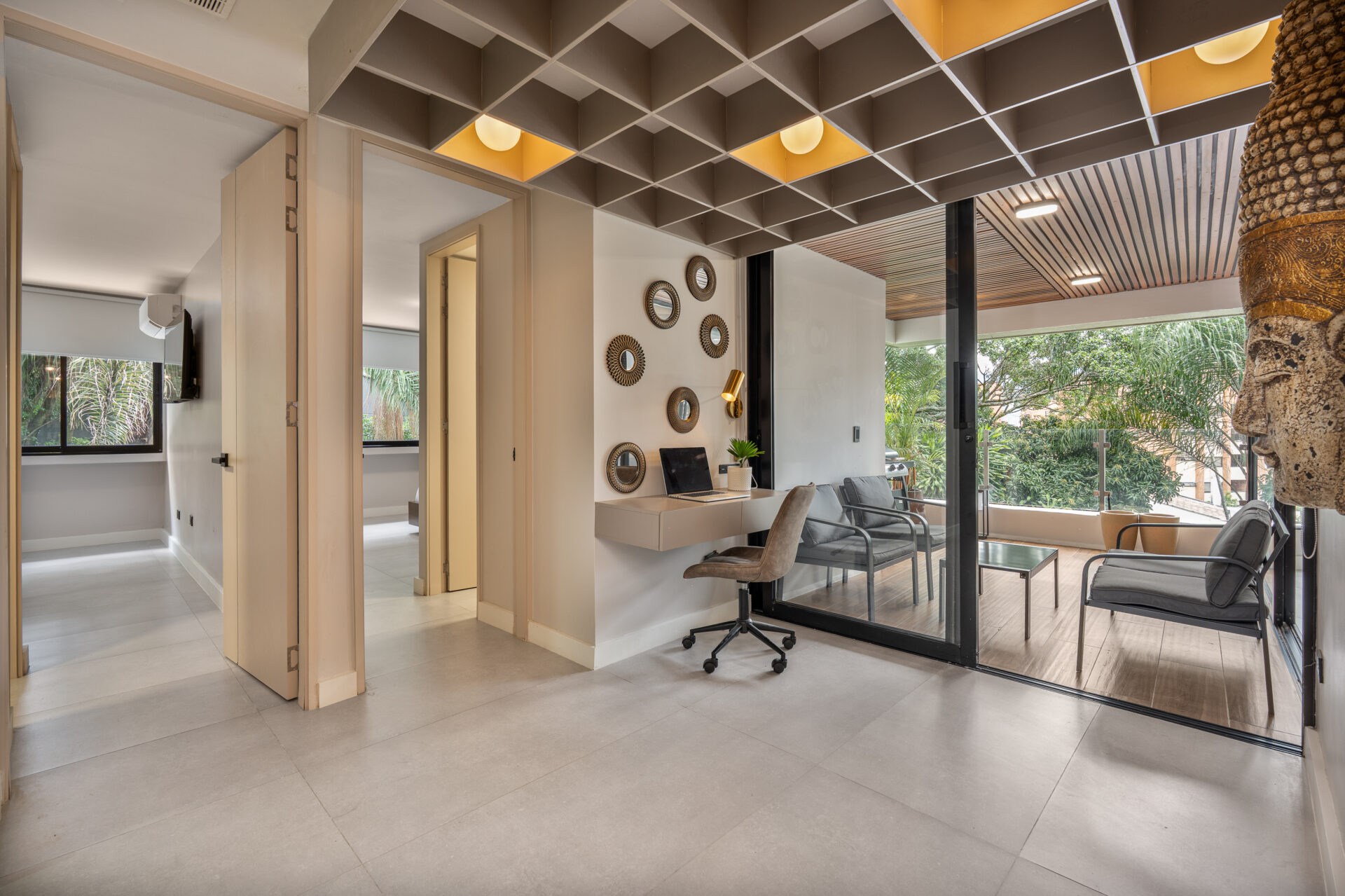 The apartment is within walking distance of some of the city’s best restaurants, cafés, and convenience stores, as well as major shopping centers such as Santa Fe and Oviedo. Its location combines accessibility with a peaceful residential setting, making it suitable for short-term rentals or long-term stays.