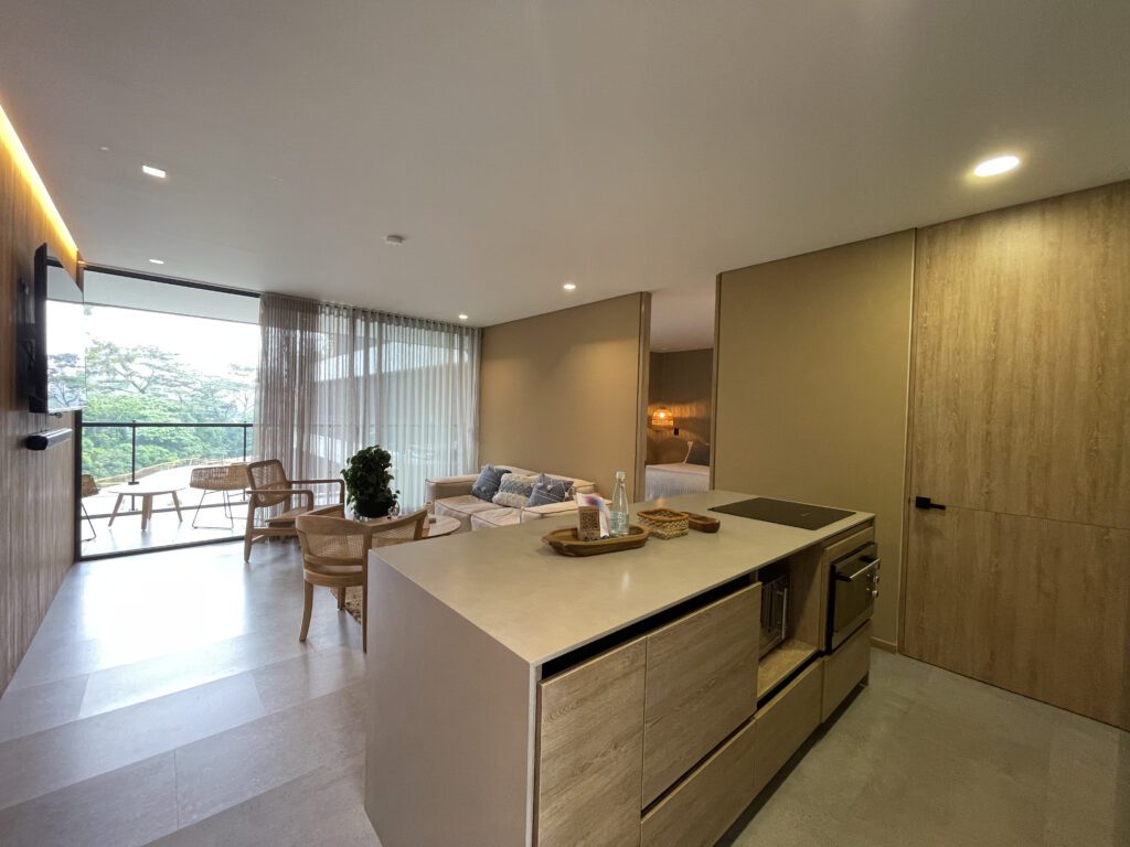 Eligible for legal Daily Rentals/ Airbnb. This elegant 2-bedroom, 2-bathroom apartment is situated in the desirable Lalinde/Provenza area of El Poblado. Spanning 92 square meters, the apartment features an open kitchen with high-end finishes, an ample balcony, and a private jacuzzi, offering a serene outdoor retreat.