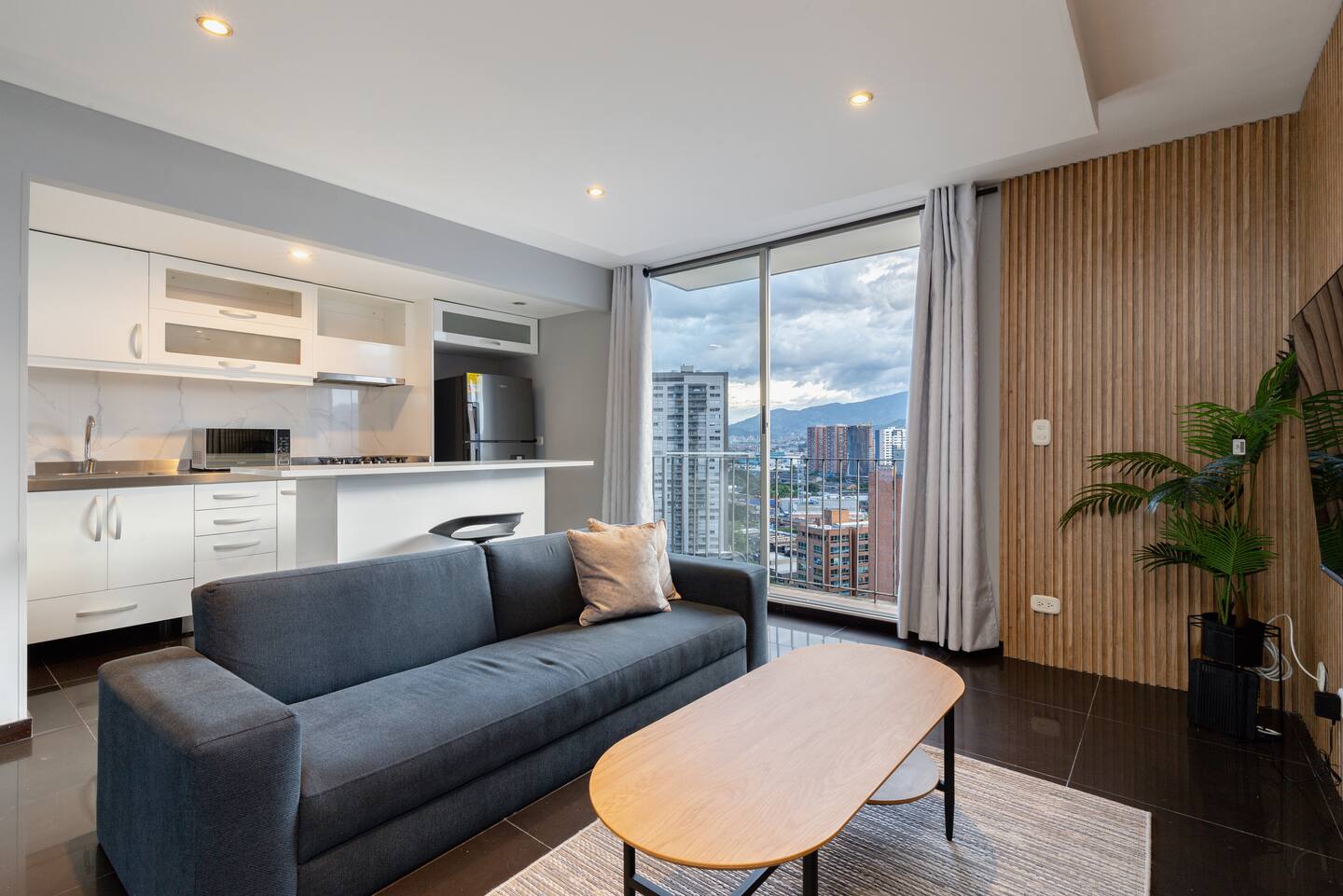 This fully furnished 2-bedroom, 2-bathroom apartment offers comfortable city living with sweeping views of Medellín’s skyline. The apartment features a bright living area, a modern kitchen, and well-distributed spaces ideal for both long-term living and rental potential.