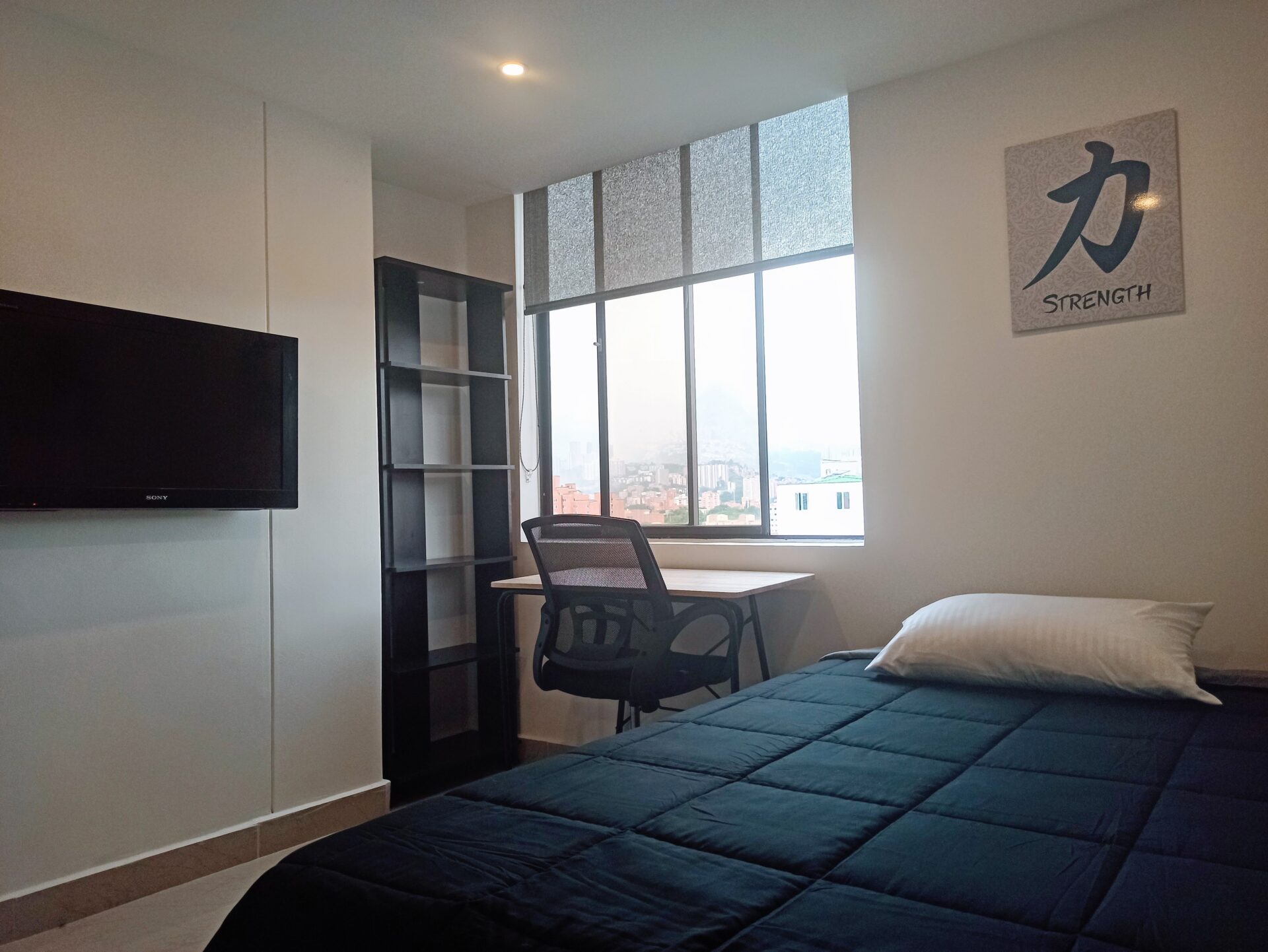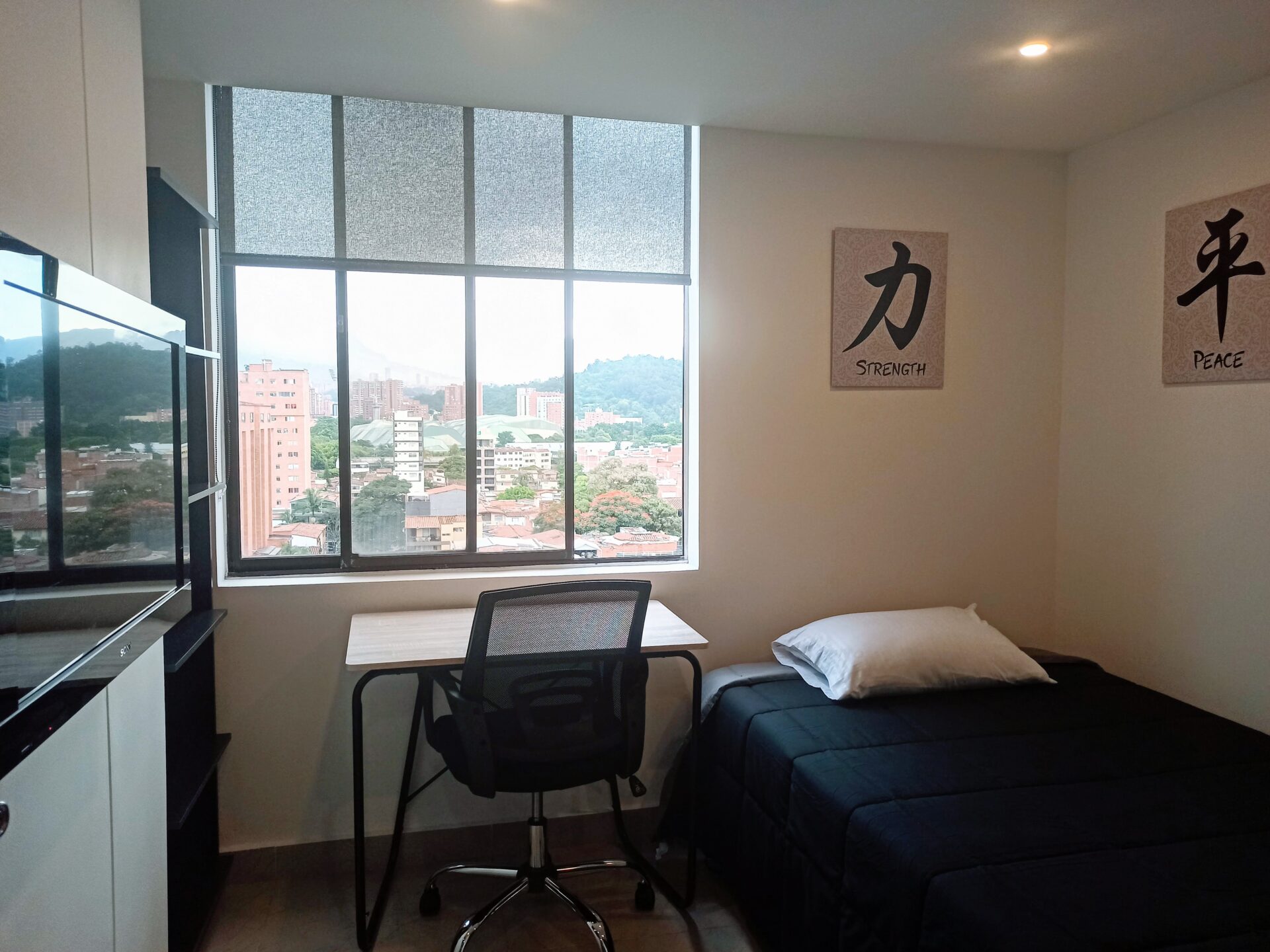We are pleased to present an exceptional fully renovated apartment in the heart of the esteemed “La 70” district in Laureles. This meticulously designed two-bedroom, one-bathroom apartment spans a comfortable 44m2. It boasts an array of modern conveniences, including high-speed internet connectivity, an induction stove, washer/dryer facilities, dedicated TVs in each room, efficient AC, European-style windows, and 24-hour security. Positioned on the 10th floor, this apartment offers a panoramic view of the surroundings.