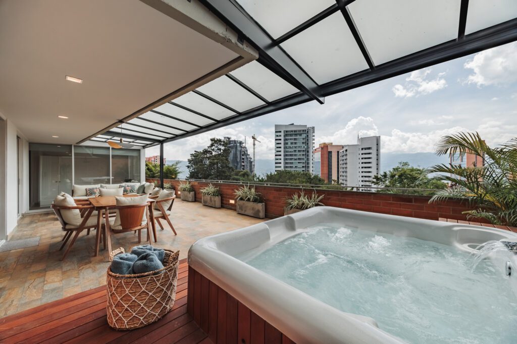 Experience the ultimate in modern luxury at this renovated 2 bedroom apartment in Medellin. With a stylish and modern interior design, fast and stable internet, and a terrace with a view, jacuzzi, guests can enjoy the perfect balance of comfort and convenience. Plus, with amenities such as a pool, sauna, 24-hour security, and parking, guests can relax and feel secure during their stay.