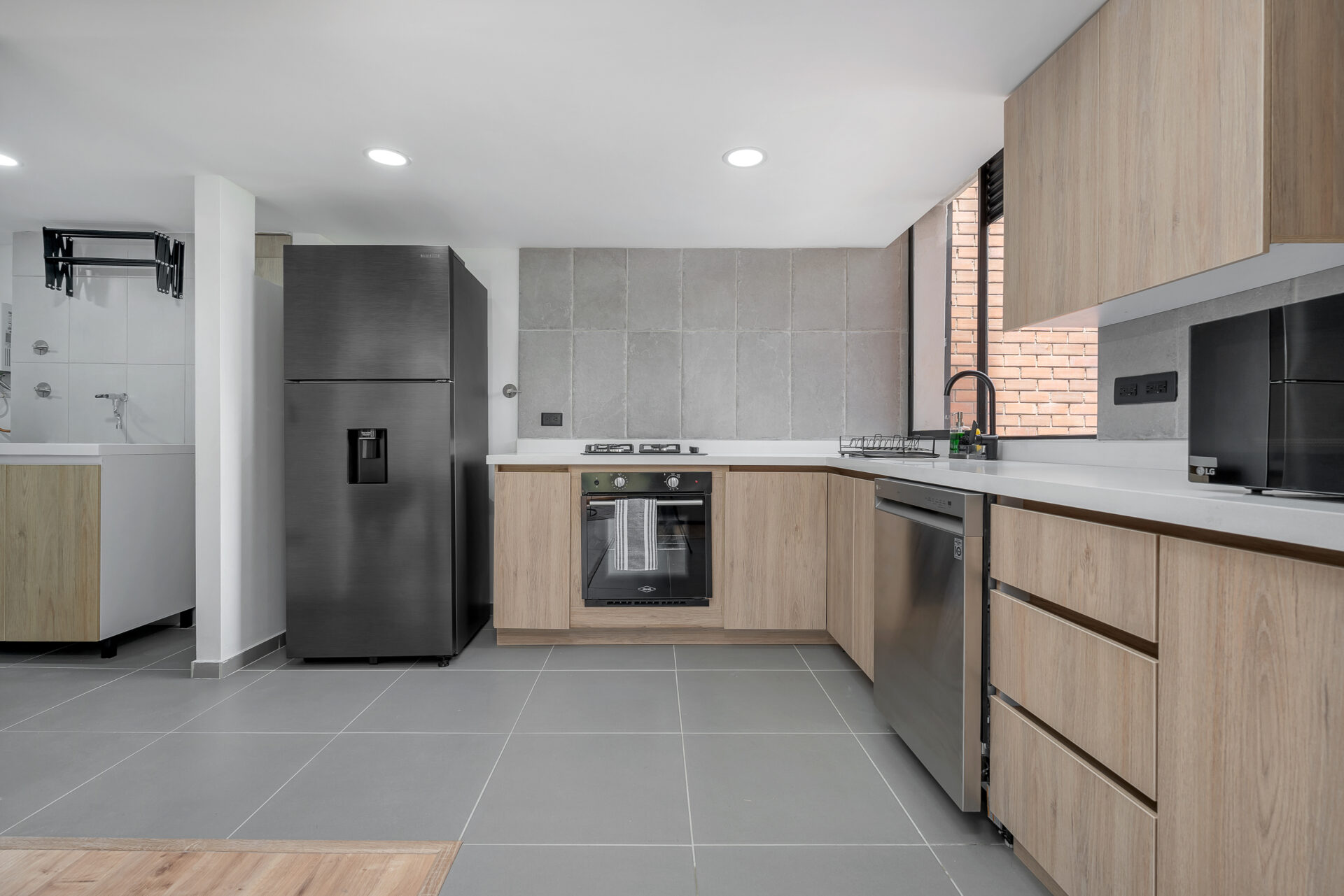 - Open, fully equipped kitchen with high-end appliances.