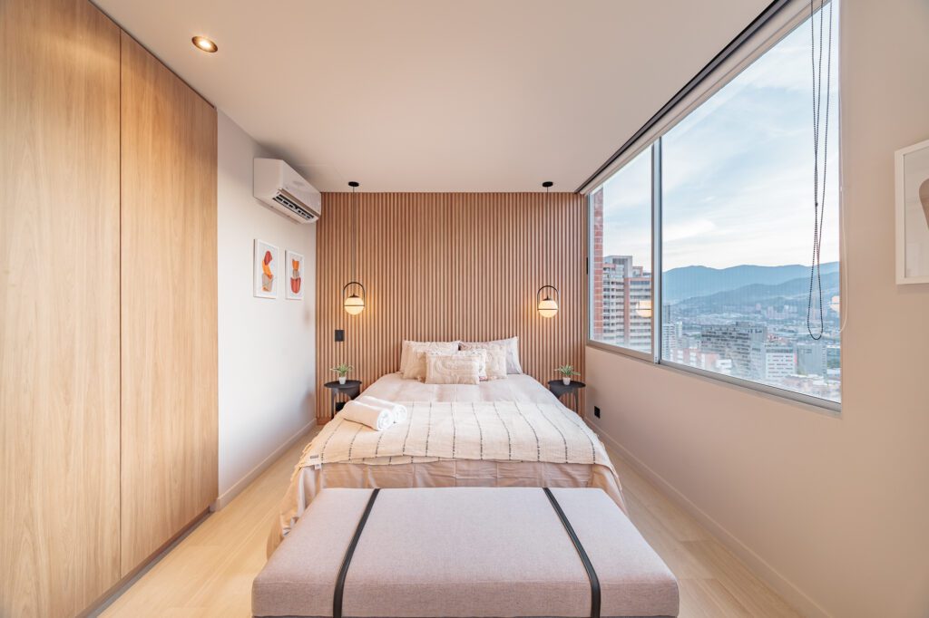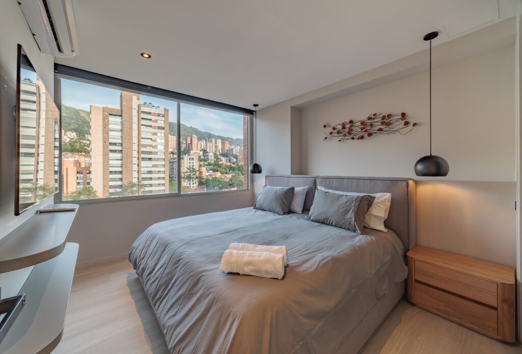 Discover the height of opulence in this contemporary 2-bedroom, 2.5-bathroom apartment nestled within the vibrant Alejandria neighborhood of Medellin. Revel in the comforts of central air conditioning as you soak in mesmerizing city vistas. Each bedroom is beautifully designed and comes furnished with a king and queen bed, along with a smart TV for your entertainment. Step onto the private balcony to enjoy a serene outdoor escape. The fully equipped kitchen and dining area are ready to cater to your culinary desires, making dining in a breeze. Relax in the cozy living room, equipped with a smart TV and fan for your convenience.For those needing a dedicated workspace, you’ll find a designated desk for work or reading. Additionally, the apartment offers a laundry area for added convenience. With its modern amenities and spacious layout, this apartment elevates your stay, ensuring a truly memorable experience.