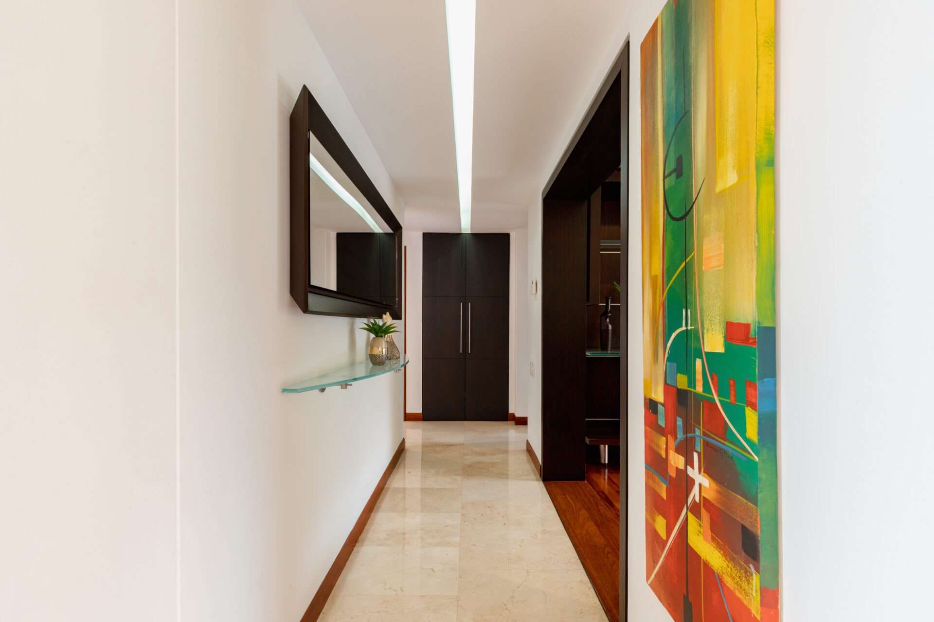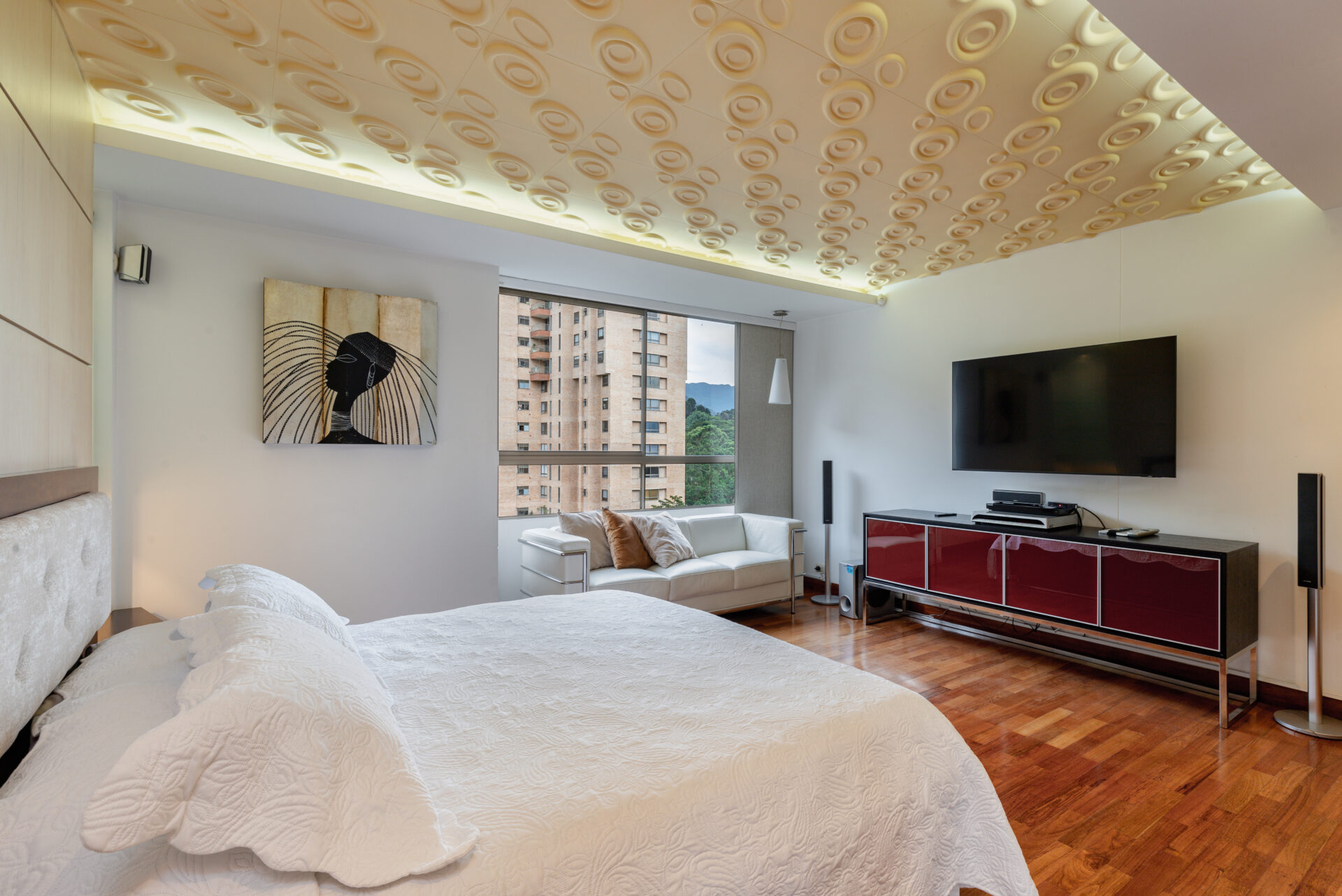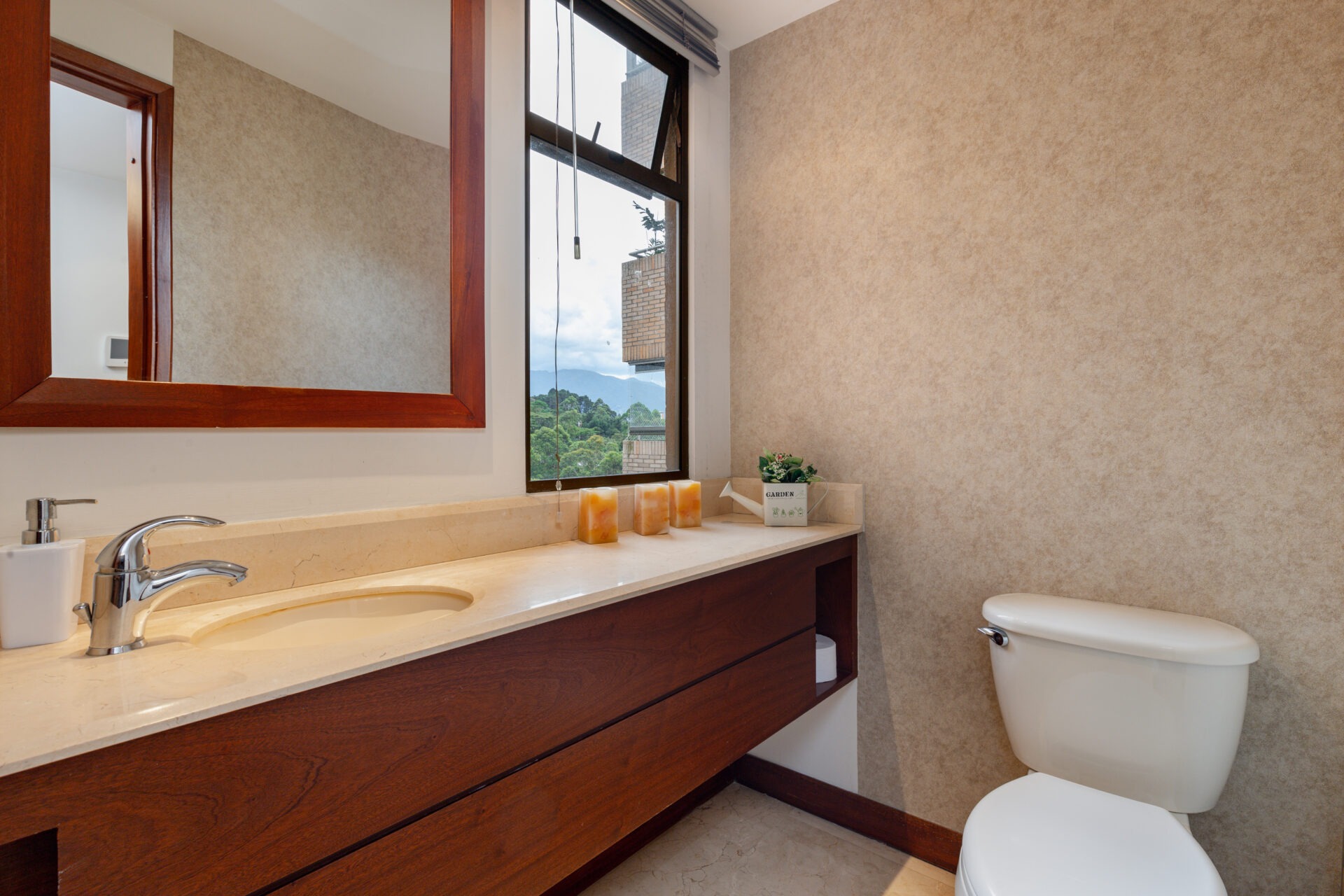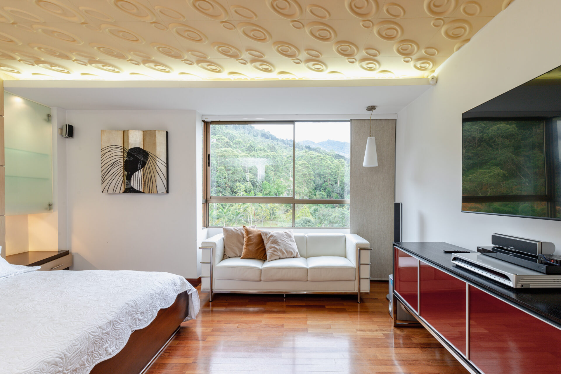Surrounded by a peaceful forest, the apartment offers a tranquil atmosphere just minutes away from El Tesoro Mall, Amsterdam Plaza, and the best dining and shopping in Medellín.