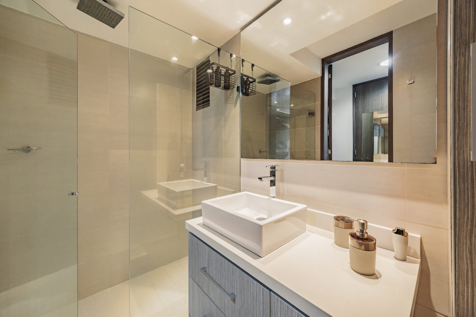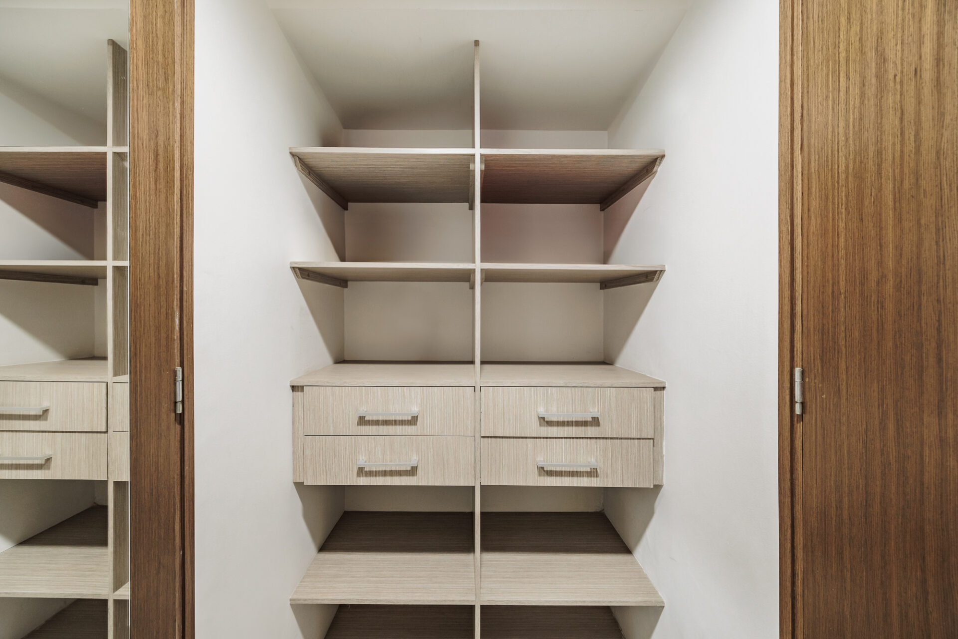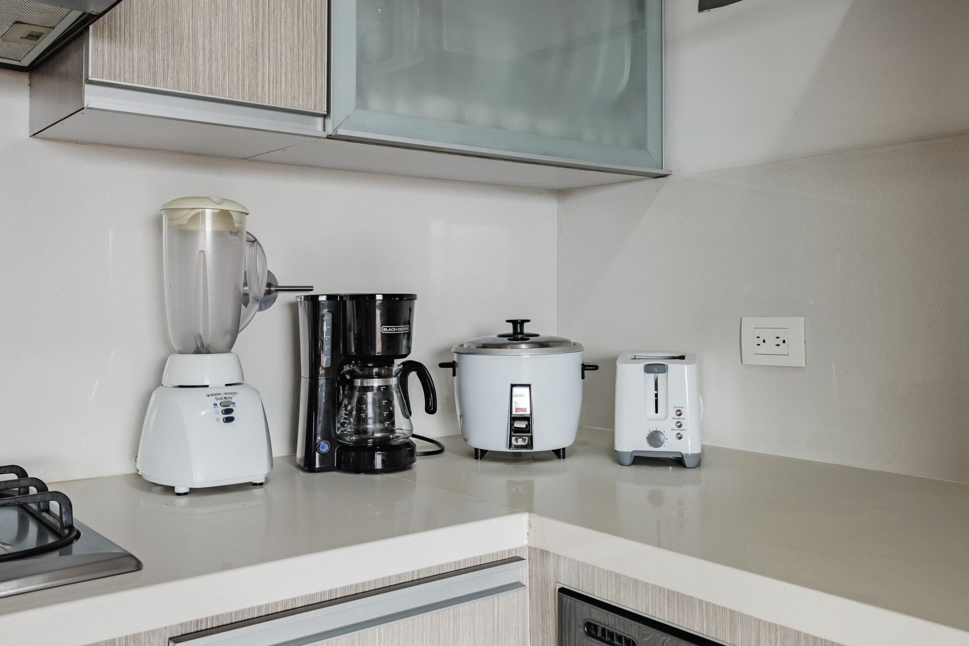 The master bedroom features a king-size bed, an ensuite bathroom, and a spacious closet, while the second bedroom offers a comfortable sofa bed, desk, and closet, making it ideal for remote work or an additional guest.