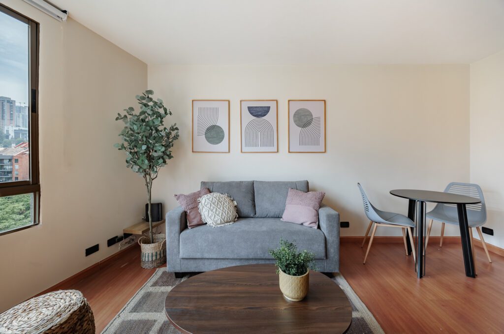 Enjoy a comfortable stay in this modern 1 bedroom apartment located in the lively El Poblado neighborhood. Relax in the spacious living room with a super comfy sofa bed. Indulge in the convenience of having a fully equipped kitchen, laundry area with a washer machine, and a balcony. Within a 10-minutes by car, you can explore Provenza and Parque Lleras with a variety of bars, restaurants, making it the perfect location for your stay in Medellin.