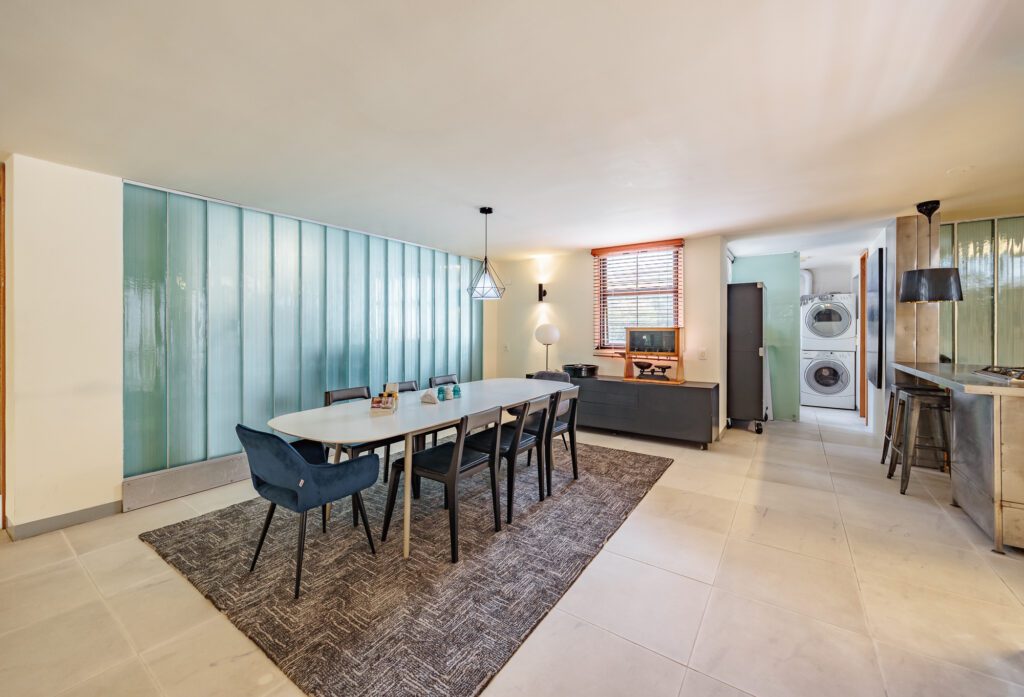 Our kitchen is fully equipped, allowing you to prepare delicious meals with ease. It includes modern appliances, cookware, and utensils. The laundry area is equipped with a washer and dryer for your convenience.
