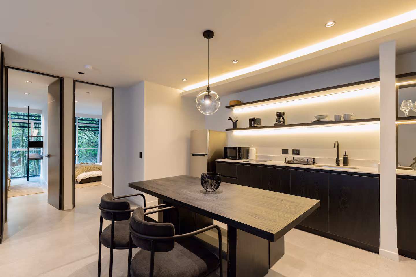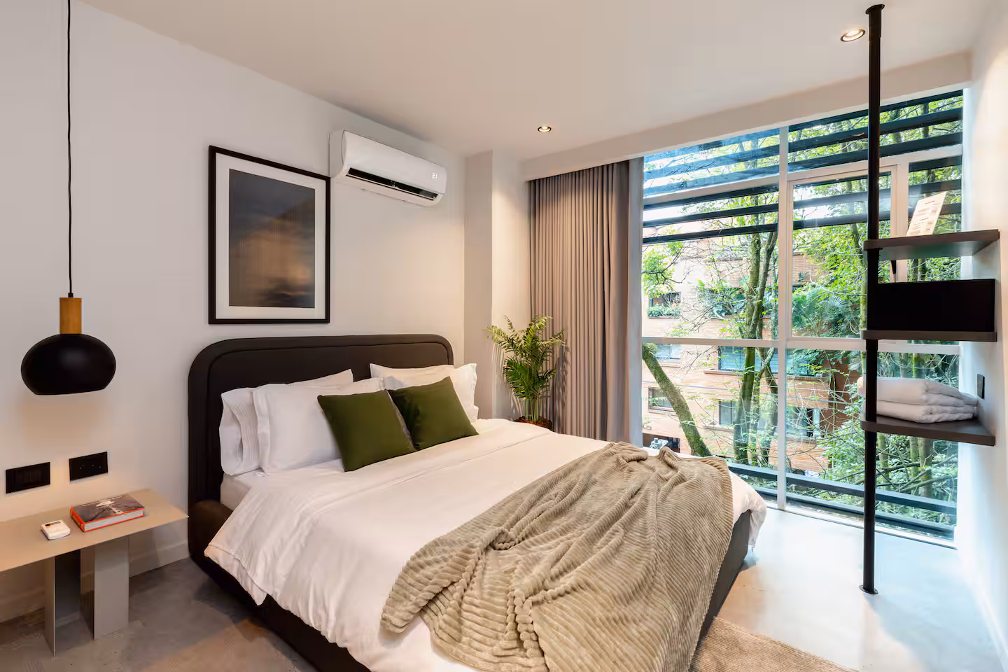 The apartment’s location is one of its main advantages. Situated steps away from Medellín’s best restaurants, cafés, and entertainment venues, it offers unmatched accessibility for visitors. The property is within walking distance of Provenza, the city’s most recognized dining and nightlife district, as well as close to grocery stores, pharmacies, and shopping centers. Despite its central location, the building sits on a quiet street, providing a sense of calm and privacy for guests.