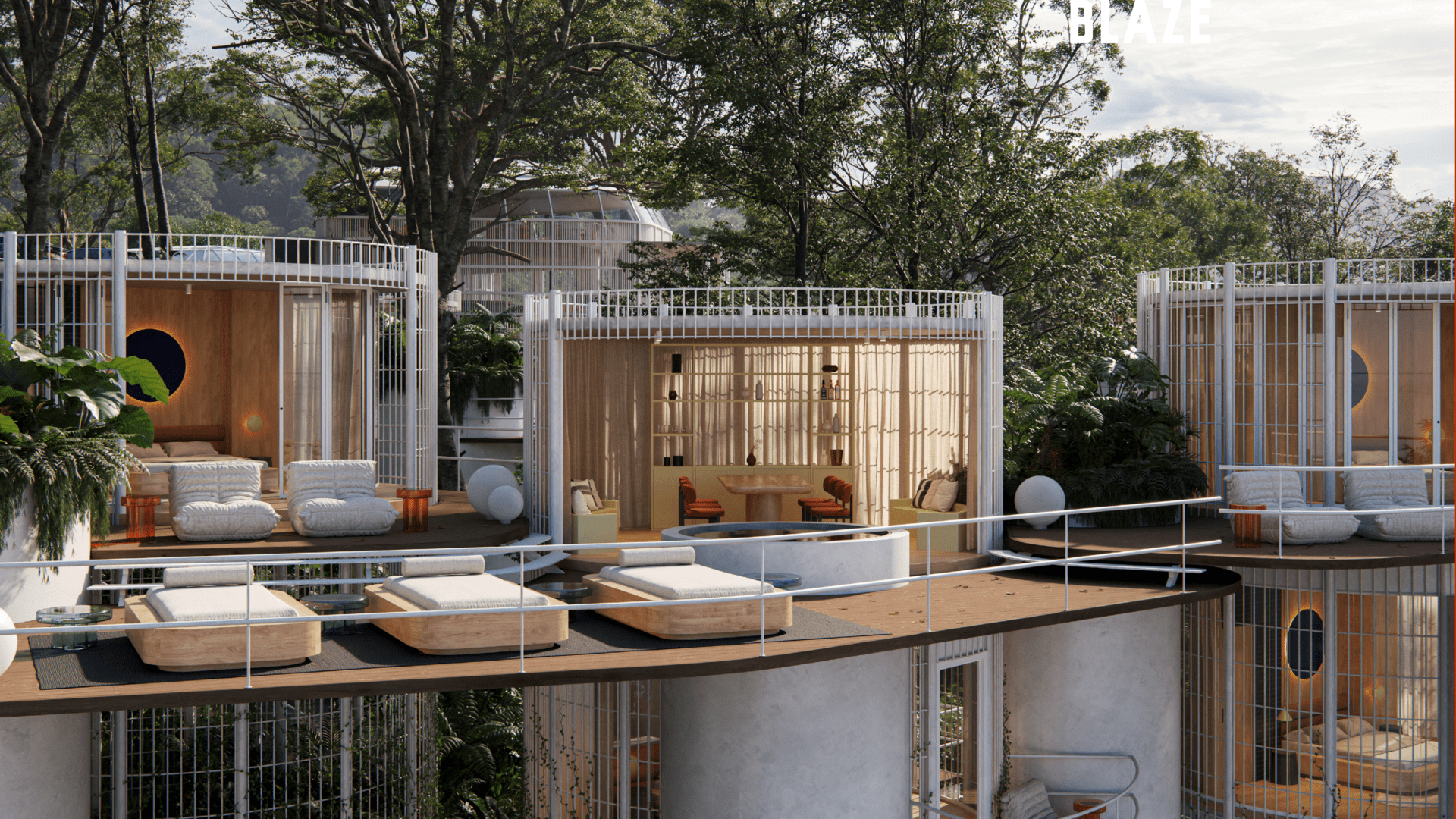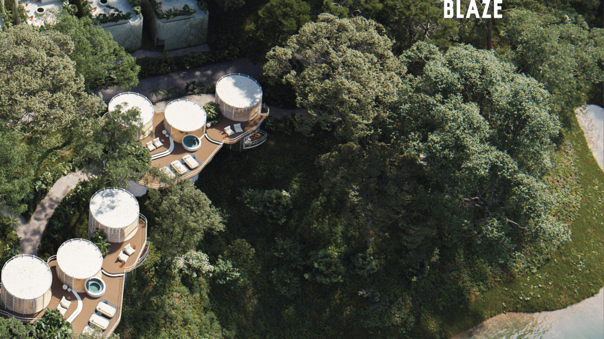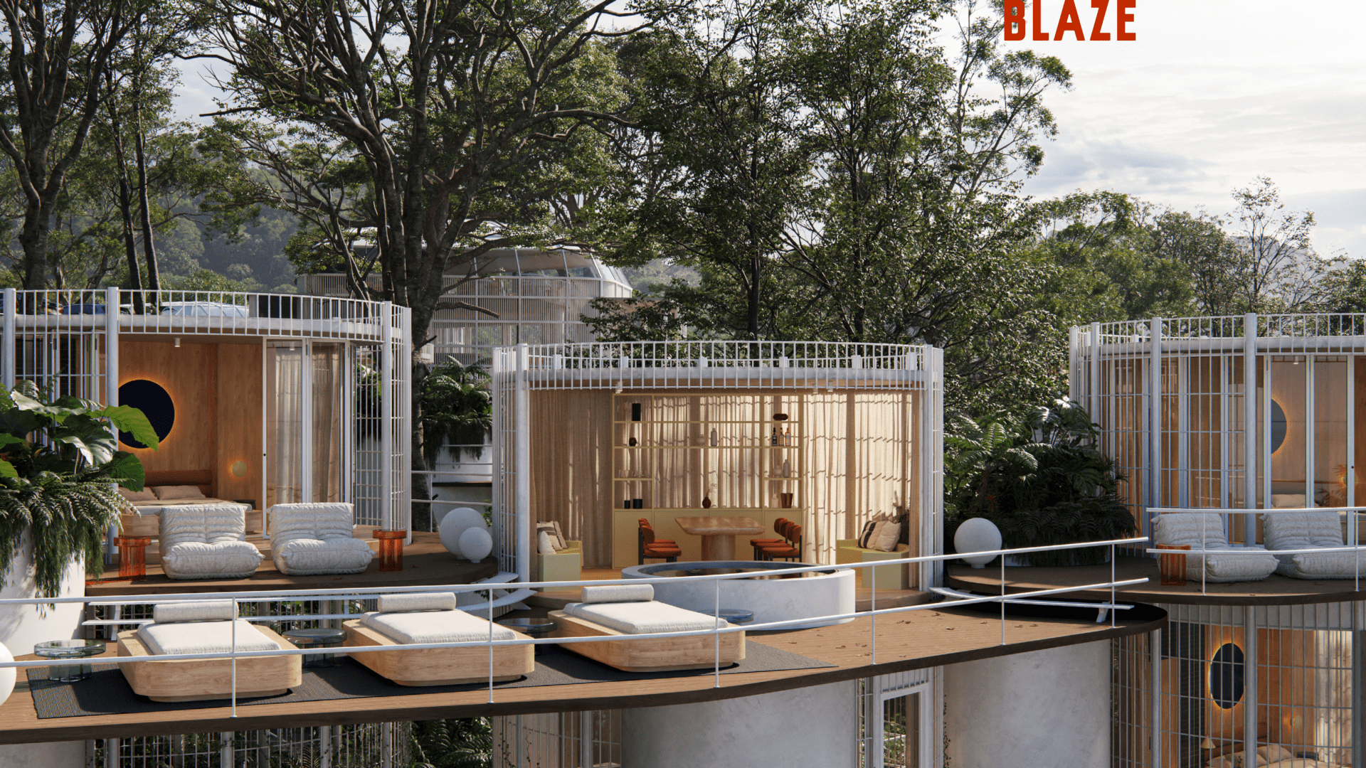 The architectural vision for BLAZE is rooted in “Conscious Luxury,” utilizing an organic grouping model inspired by mycelium to harmonize with the surrounding landscape. The project spans 25,000 m2 of prime lakeside land and features a bold, modular design focused on the pillars of interaction, flexibility, and privacy. This 60-room boutique development offers unique typologies, including the innovative Hongos (Mushroom) modules—available in Premium, Medium, and Single configurations—alongside two types of lofts, all designed to offer a seamless integration of nature and architecture.