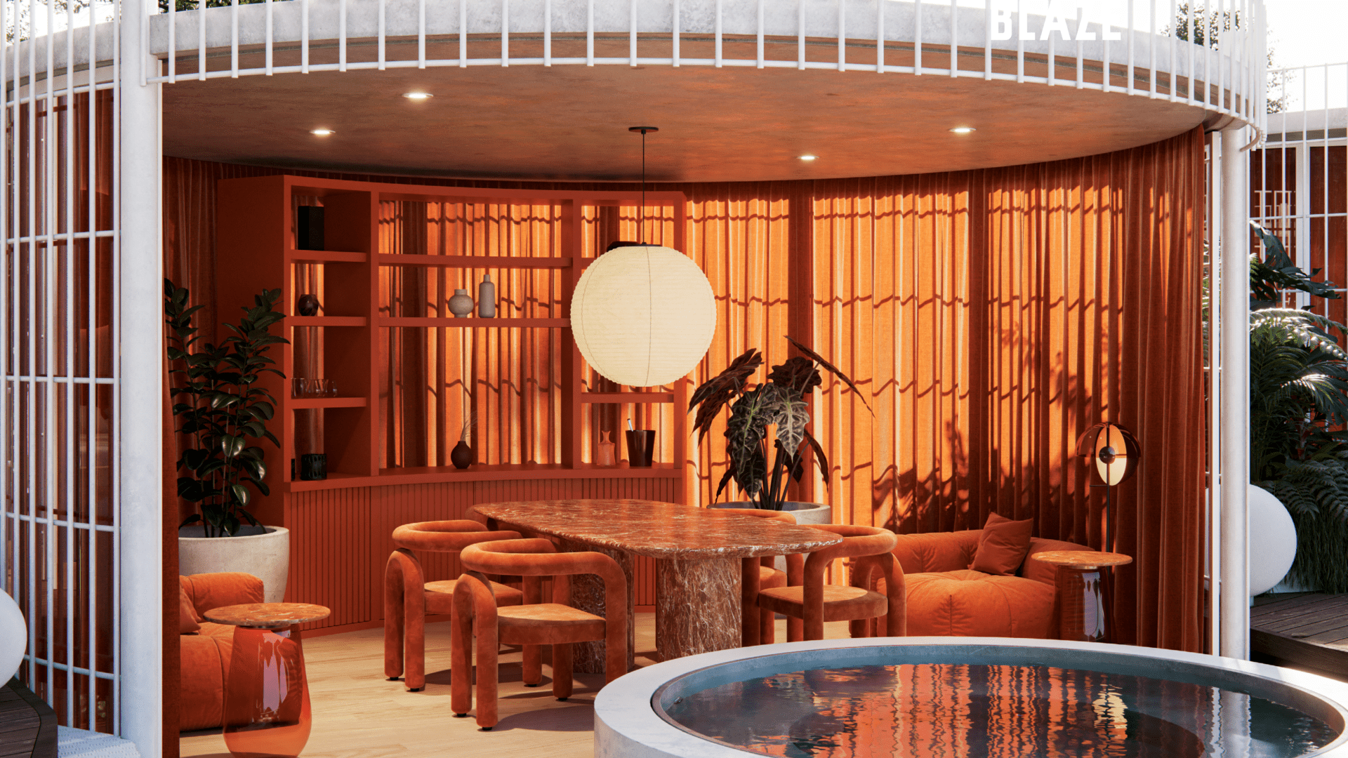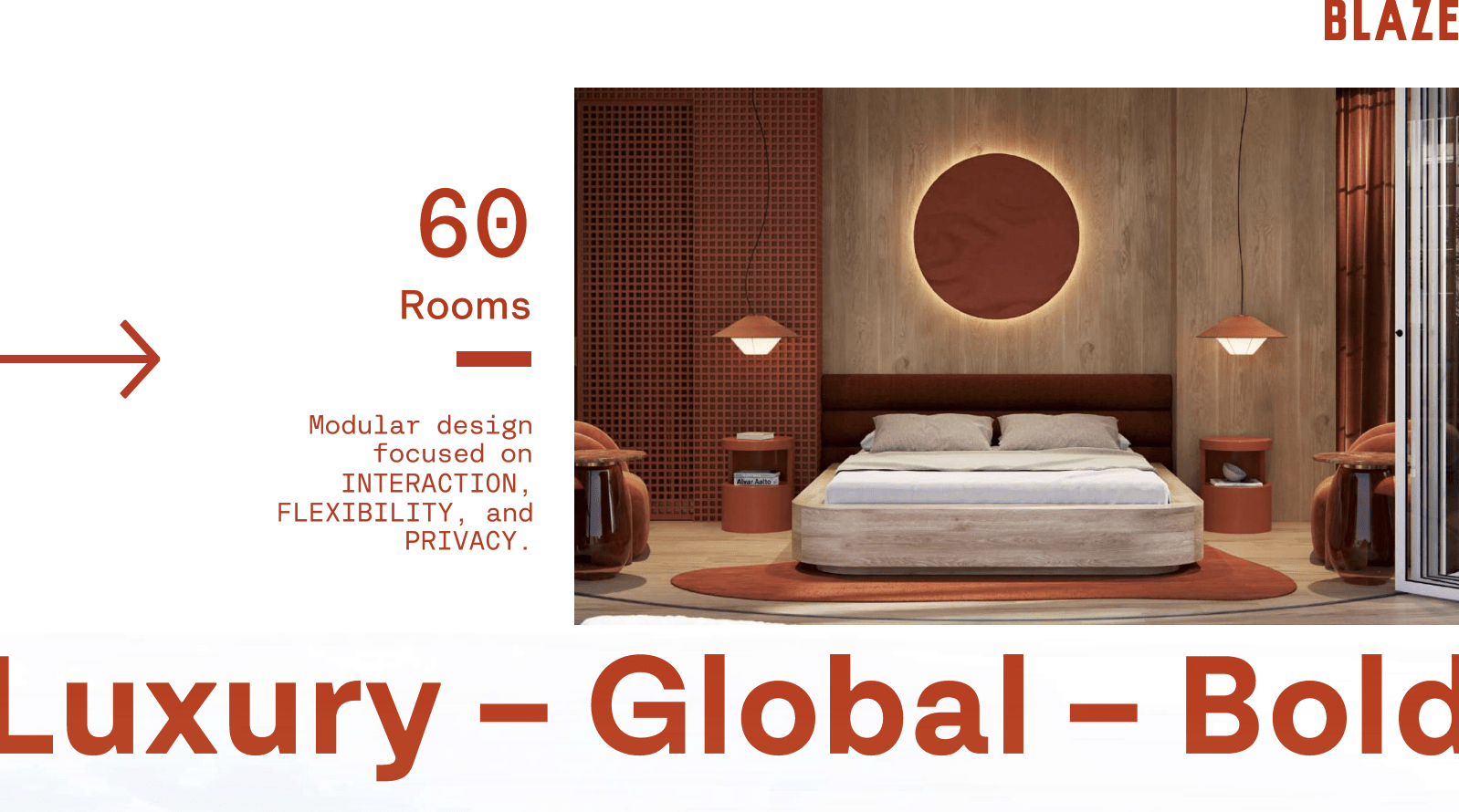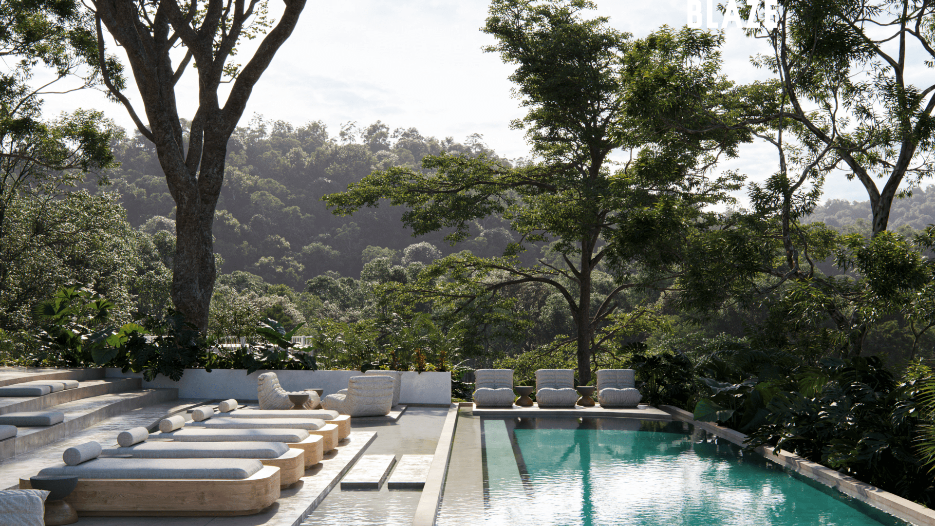 The architectural vision for BLAZE is rooted in “Conscious Luxury,” utilizing an organic grouping model inspired by mycelium to harmonize with the surrounding landscape. The project spans 25,000 m2 of prime lakeside land and features a bold, modular design focused on the pillars of interaction, flexibility, and privacy. This 60-room boutique development offers unique typologies, including the innovative Hongos (Mushroom) modules—available in Premium, Medium, and Single configurations—alongside two types of lofts, all designed to offer a seamless integration of nature and architecture.