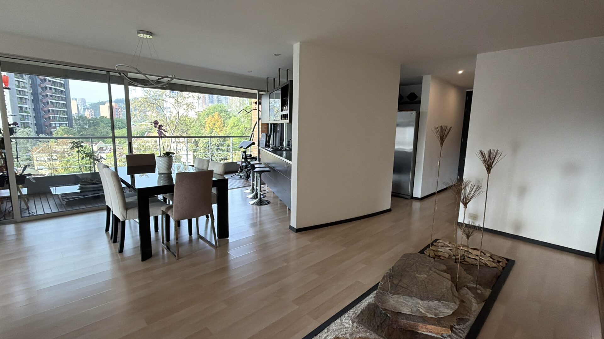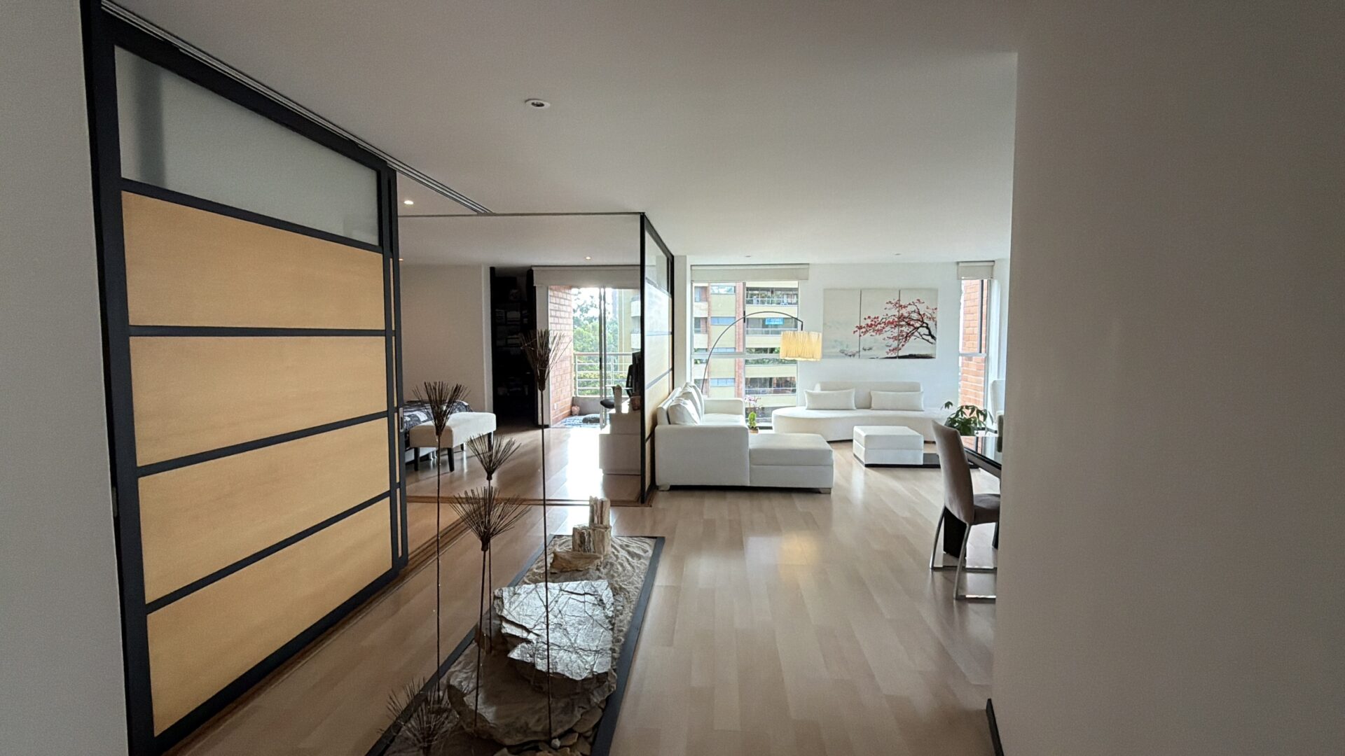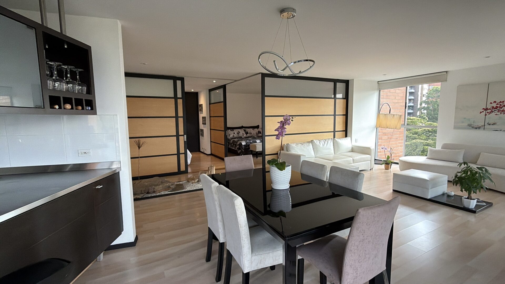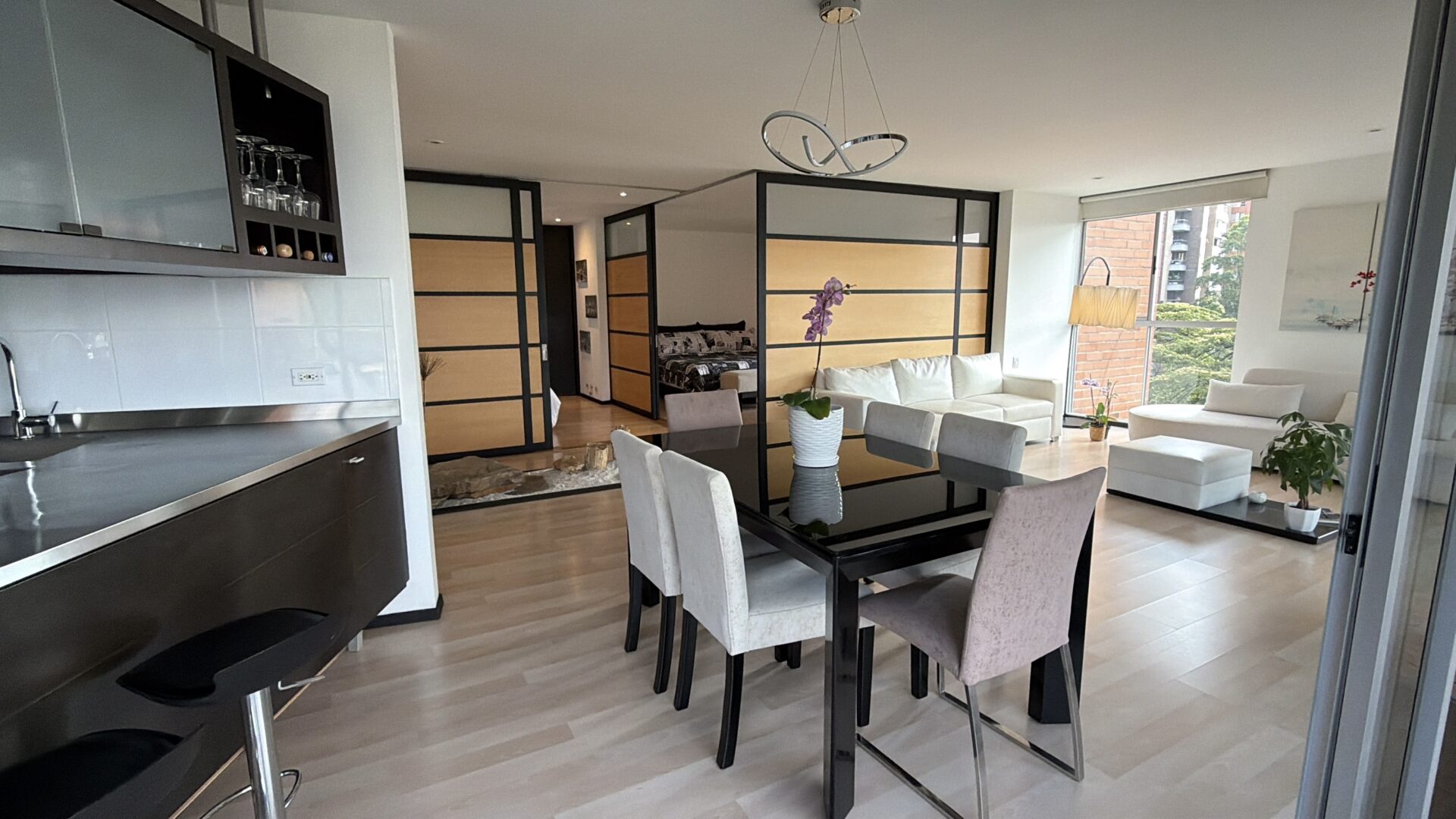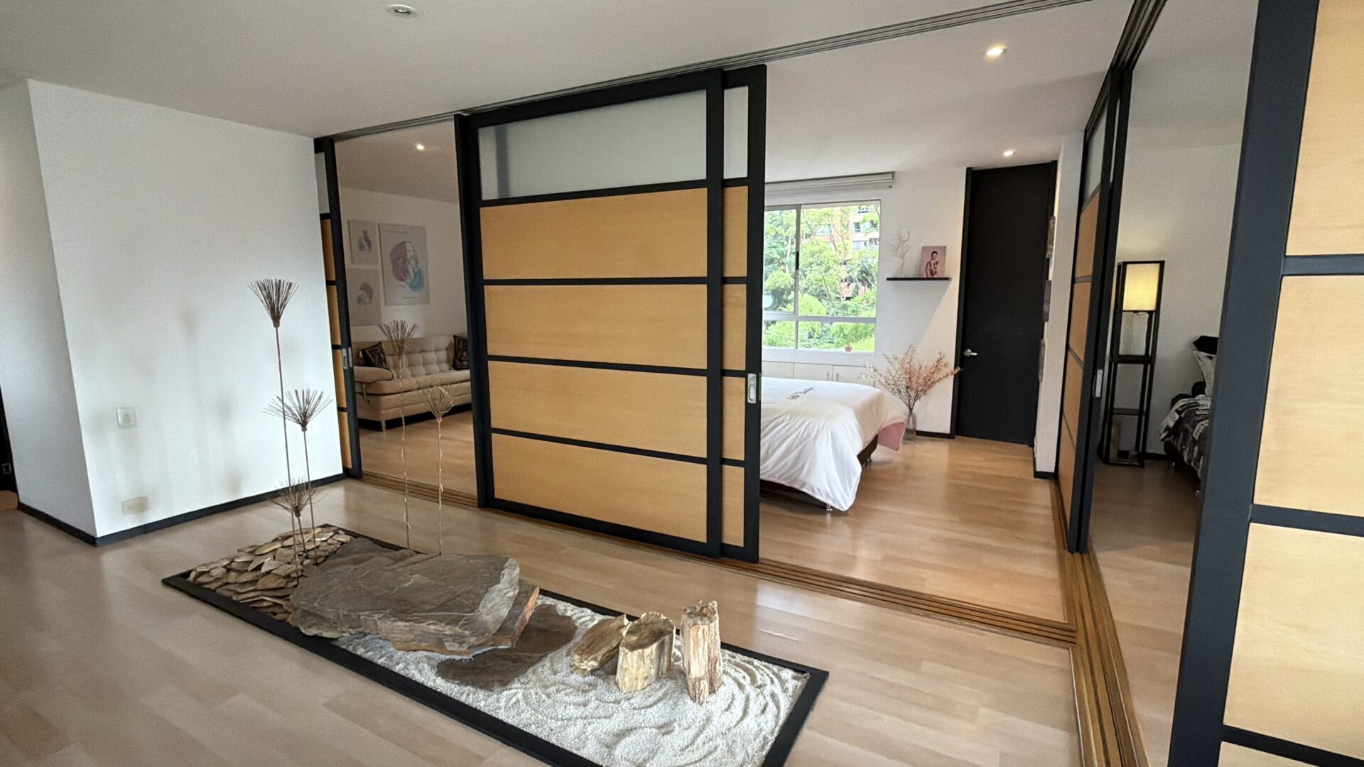 This residence is located in a premier sector of El Poblado, situated between the El Tesoro shopping district and the Provenza area. The property is defined by its Japanese-inspired aesthetic and a private Zen garden, providing a quiet and minimalist living environment. The layout is designed with an open-concept philosophy, prioritizing natural illumination and cross-ventilation throughout the entire floor plan.