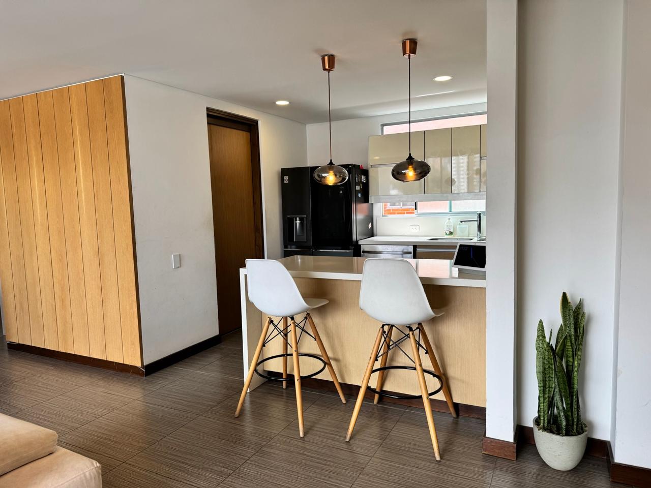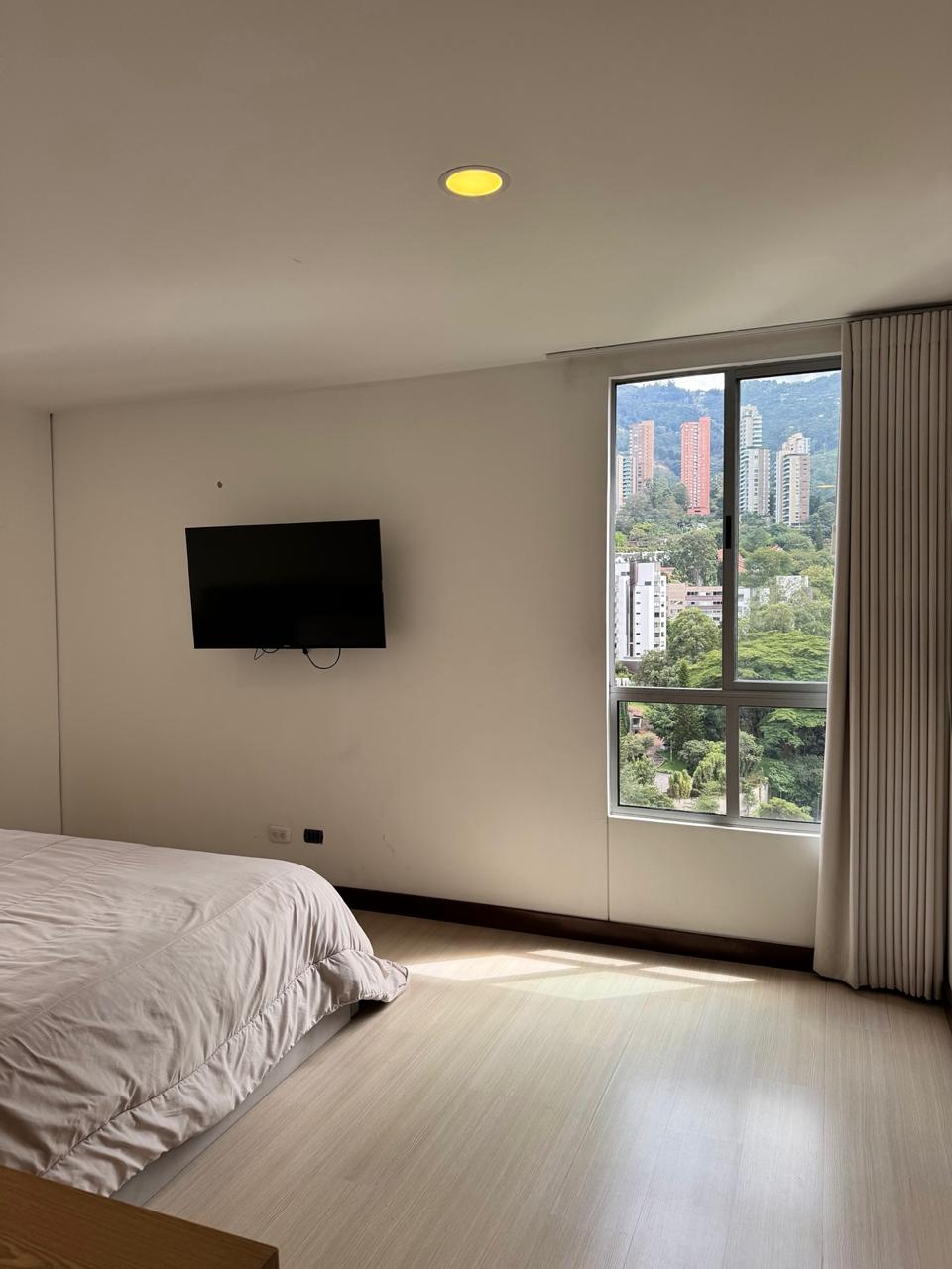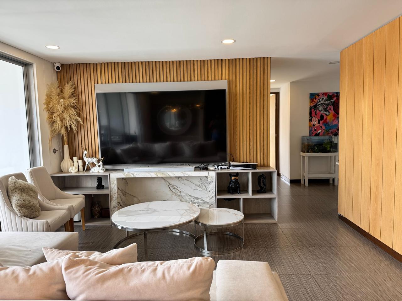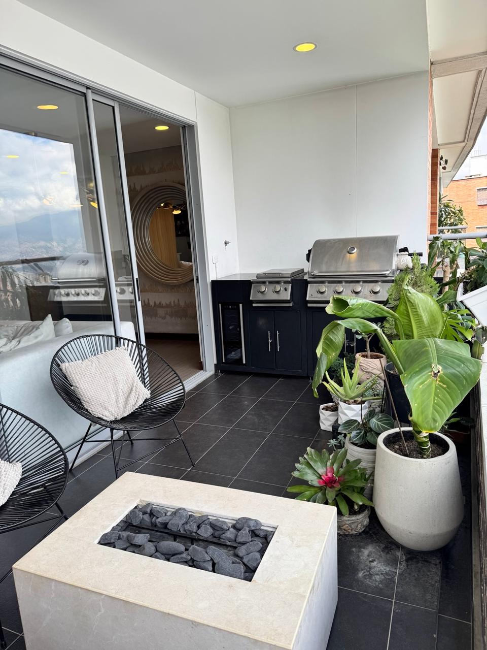 This top-floor residence is located in a premier sector of El Poblado, offering a sophisticated living environment with expansive panoramic views of the Medellín skyline and surrounding mountains. The apartment spans 129 m² and features a modern architectural layout designed to maximize natural light and ventilation through floor-to-ceiling glass sliding doors.