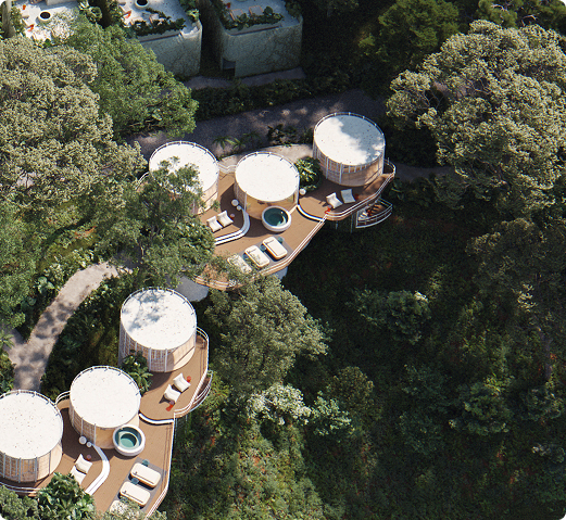 Blaze is a regenerative hospitality project inspired by the natural logic of living systems. Rooted in mycelium—the underground network that connects and sustains life—and in fire as a transformative force, Blaze redefines the way we inhabit and invest.