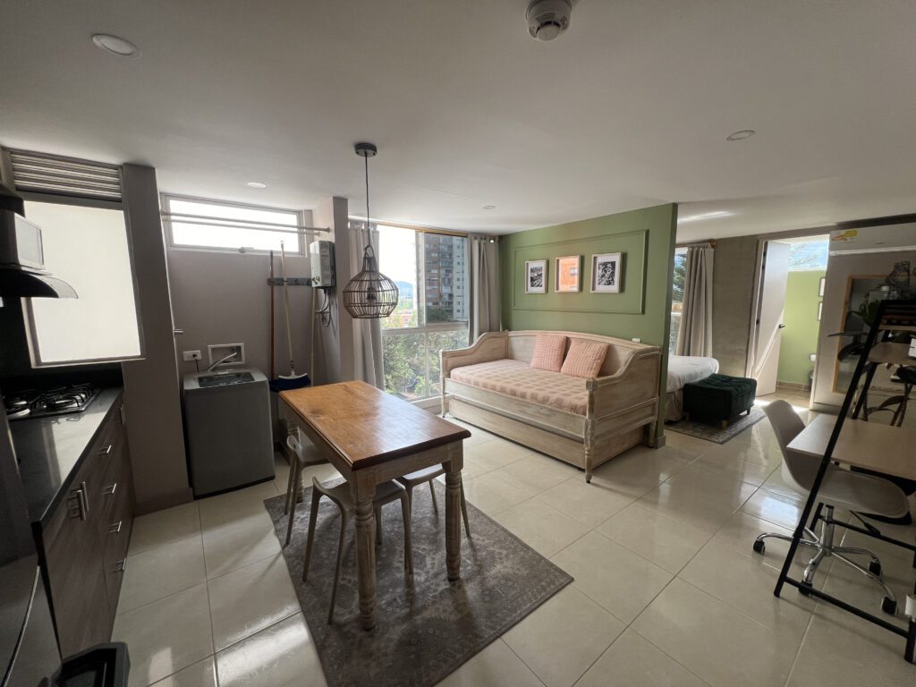 This 50 square meter 1-bedroom studio apartment is fully furnished and ready for immediate use. The unit features 1.5 bathrooms and an open kitchen, providing a practical and comfortable living space.