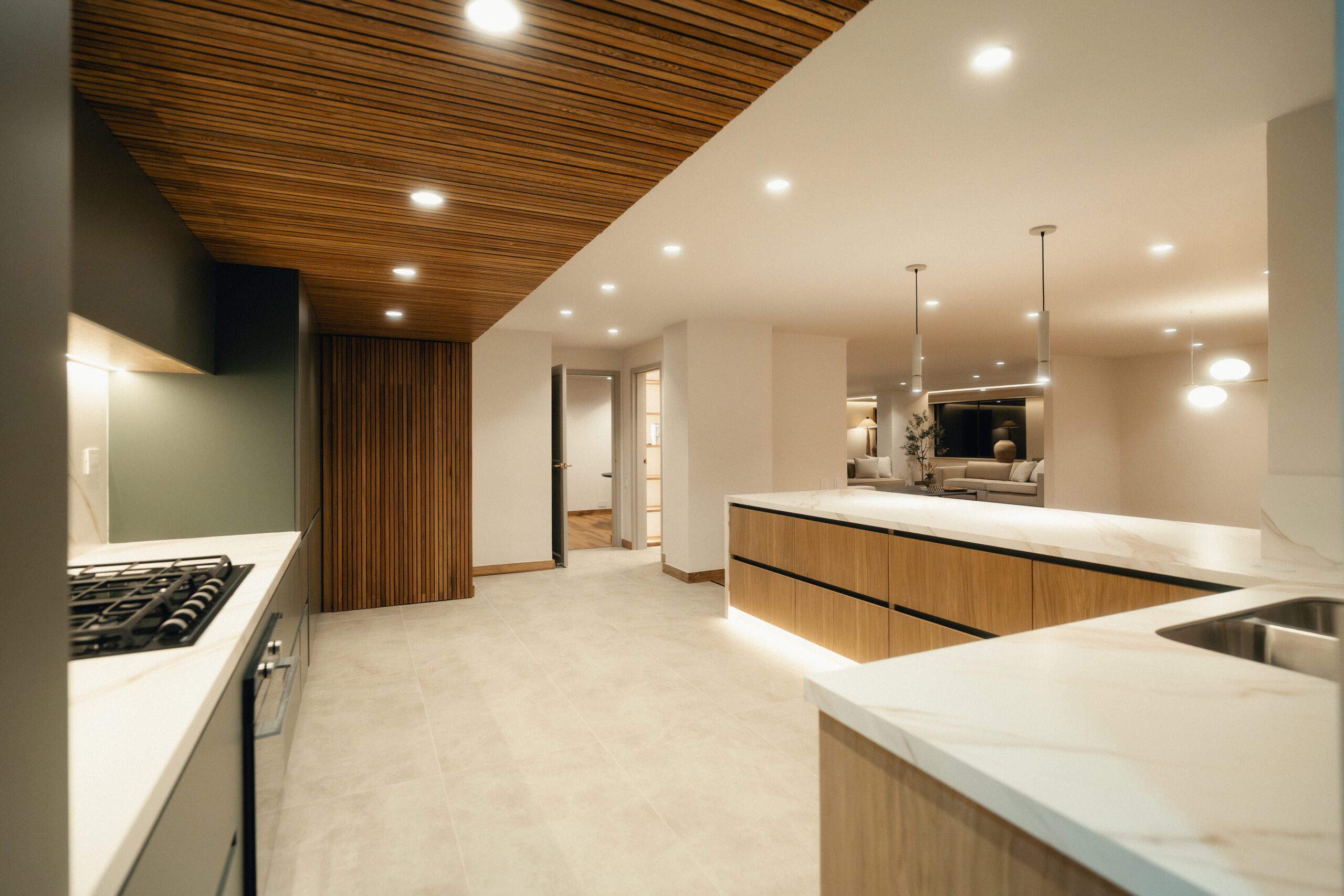 The modern kitchen is fully equipped with top-of-the-line appliances and custom cabinetry, perfect for those who appreciate both style and functionality. Every detail of the renovation reflects a commitment to quality, using high-end materials and sophisticated finishes.